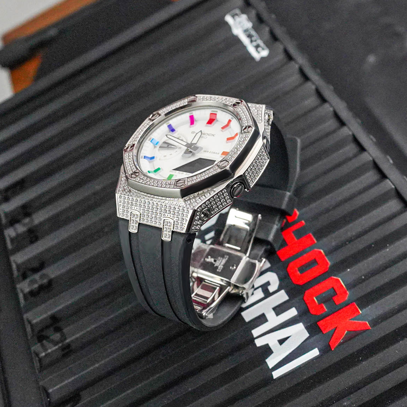 G Shock GA 2100 40mm Casio, rainbow starburst (серебро full diamond черный)