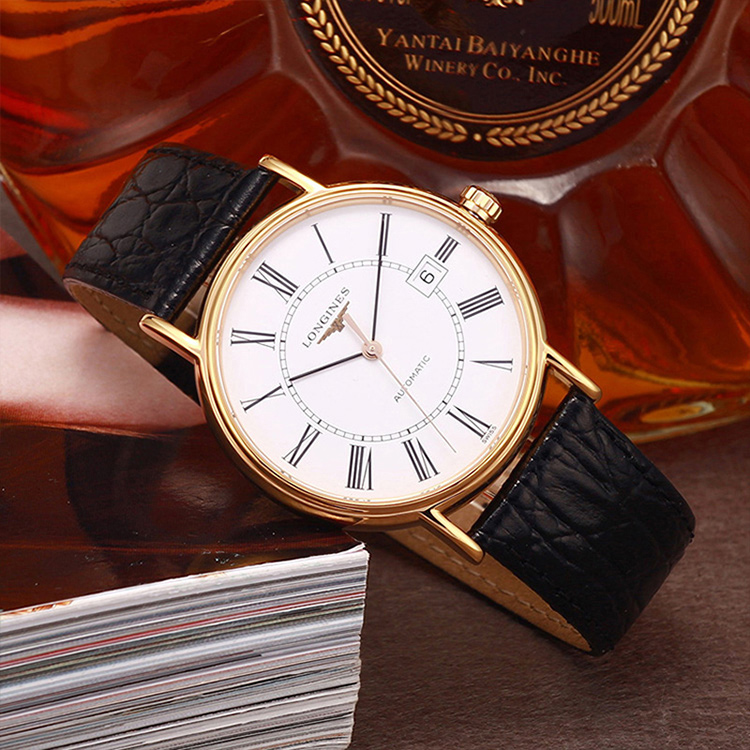 Часы из коллекции мужской моды Longines, белый dial черный strap