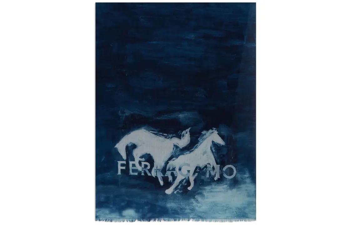 Шерстяной палантин с рисунком под лошадь Ferragamo, синий 25 074₽