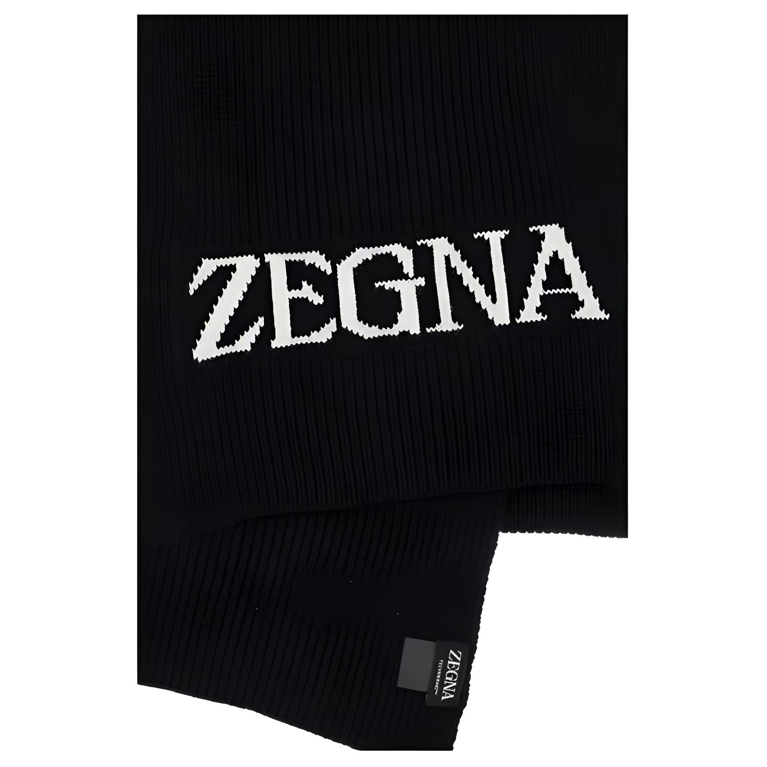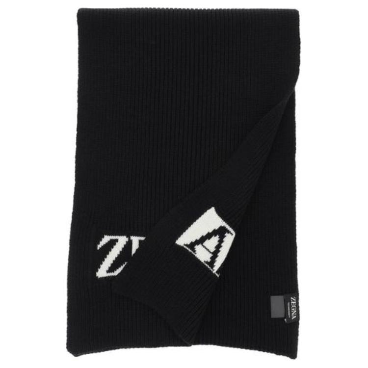 Шарф с интарсией и логотипом Zzegna, черный