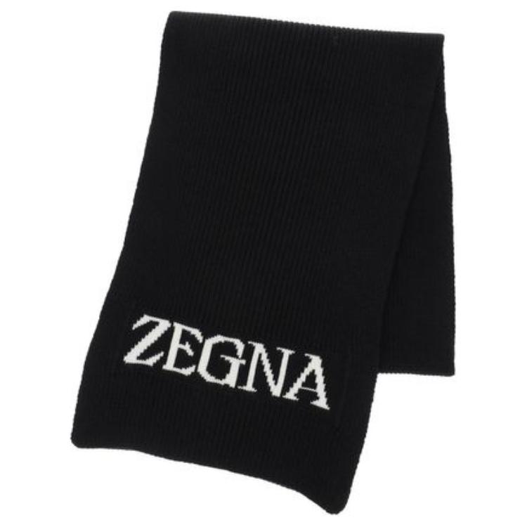 Шарф с интарсией и логотипом Zzegna, черный 25 778₽
