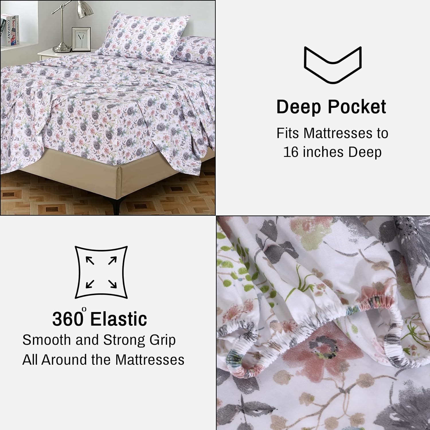 Универсальный комплект постельного белья с глубокой простыней на резинке. Простыня на резинке имеет глубокий карман (40 см) и прочную эластичную резинку по всему периметру, обеспечивающую надежную фиксацию на высоких и стандартных матрасах.