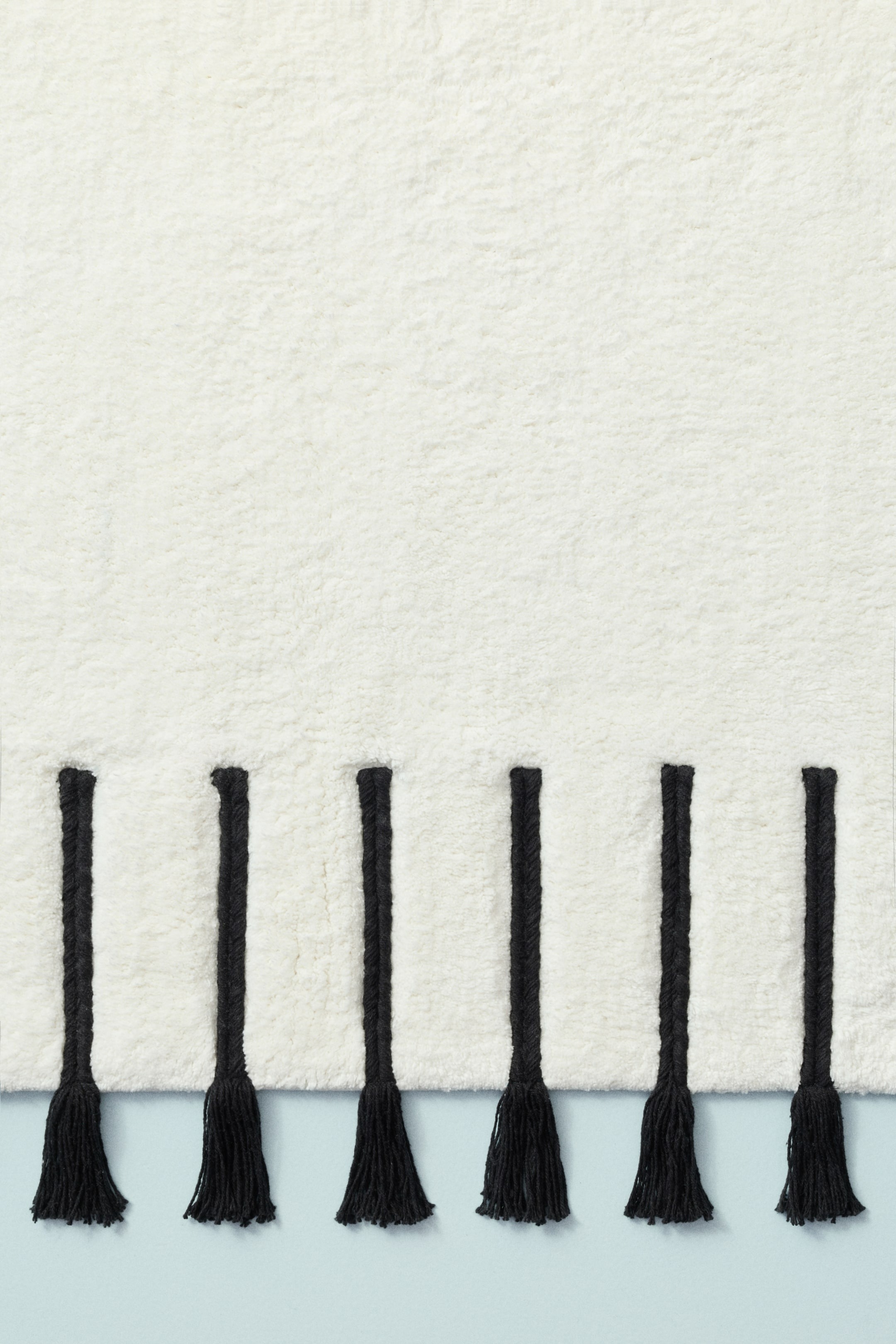 Хлопковый коврик для ванной с мягкой, пушистой поверхностью. Бахрома по краям придает ему художественный вид. Противоскользящая основа.
