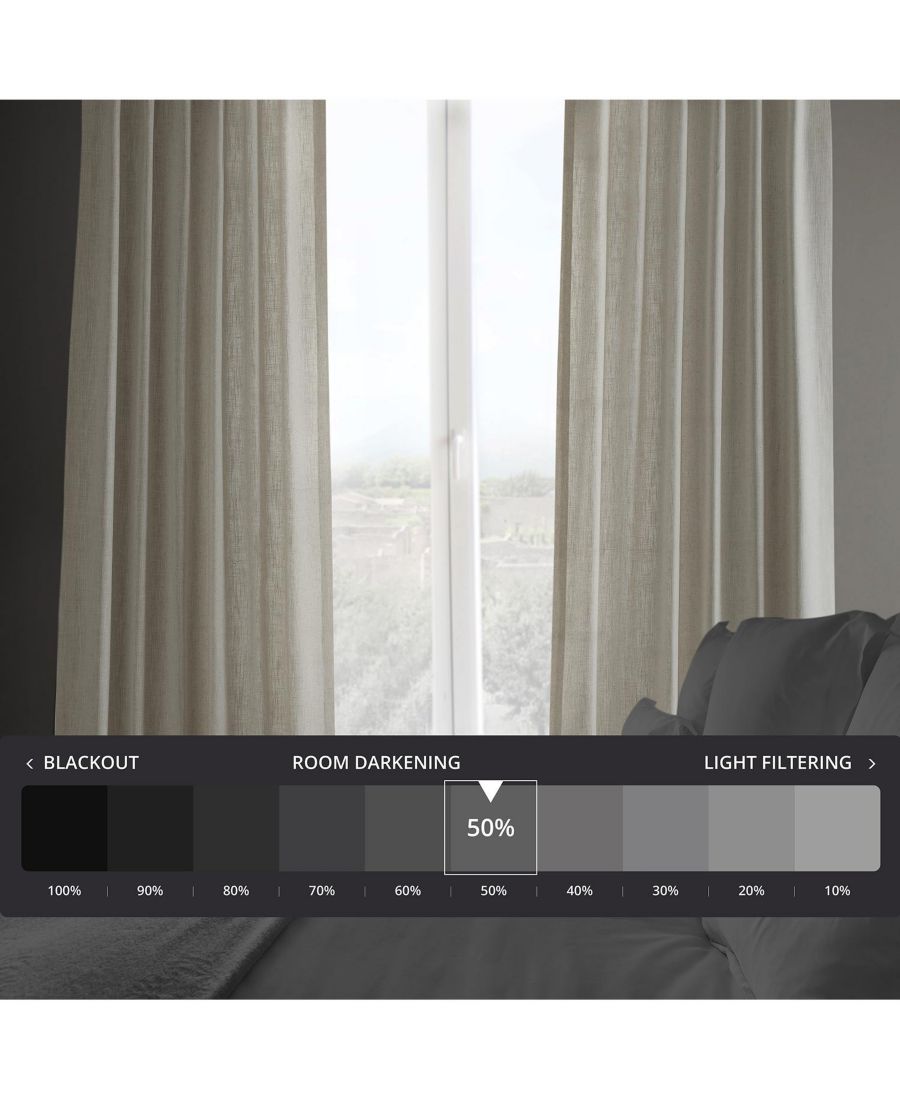 Продается поштучно Плотный искусственный лен | 96% полиэстер, 4% лен Без подкладки | Светопроницаемость Наша самая универсальная верхняя отделка: панели можно подшить на карниз с помощью кармана, повесить с помощью задних петель для создания фиксированного волнистого эффекта или прикрепить к кольцам с помощью крючков и булавок. Карман подходит для карниза диаметром до 1 1/2" x 22". Шторы следует сдавать только в химчистку. Складки можно разгладить утюгом или отпаривателем для одежды. Избегайте контакта с лицевой тканью. Химчистка Импортные