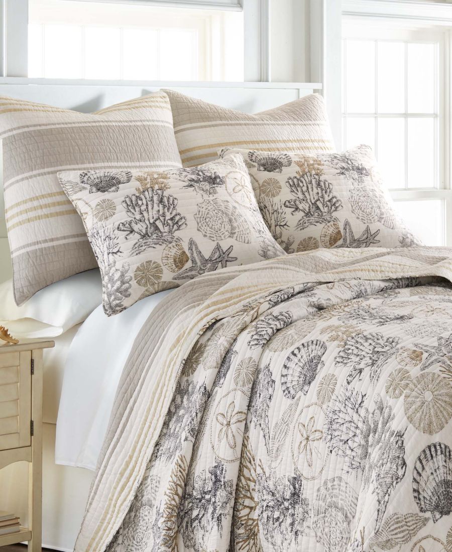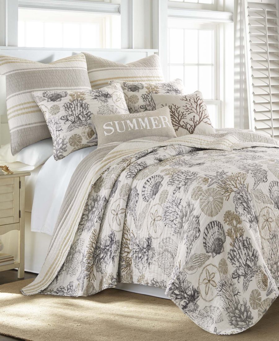 Двустороннее одеяло нейтральных цветов Caspian от Levtex Home, размер Twin/Twin XL, вдохновлено солнечным отдыхом на песчаном острове. Этот комплект с морским узором, пригодный для машинной стирки, включает в себя одеяло размером 68 x 86 дюймов и одну стандартную наволочку размером 26 x 20 дюймов.