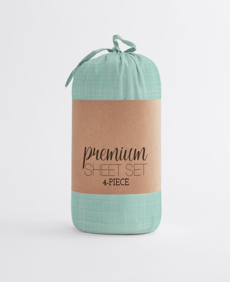 Комплект из 4 предметов включает 1 простыню, 1 простыню на резинке и 2 наволочки.