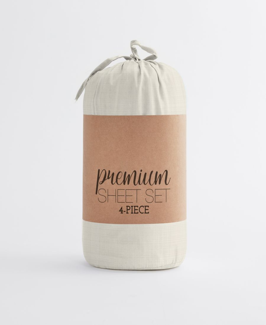 Комплект из 4 предметов включает 1 простыню, 1 простыню на резинке и 2 наволочки.