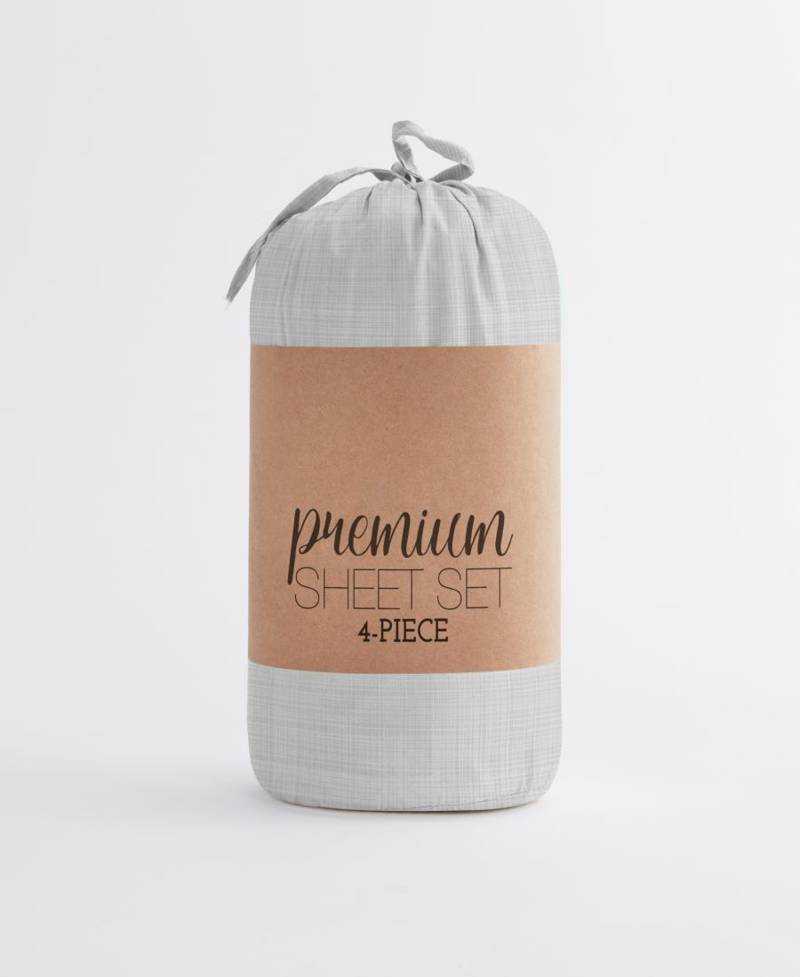 Комплект из 4 предметов включает 1 простыню, 1 простыню на резинке и 2 наволочки.
