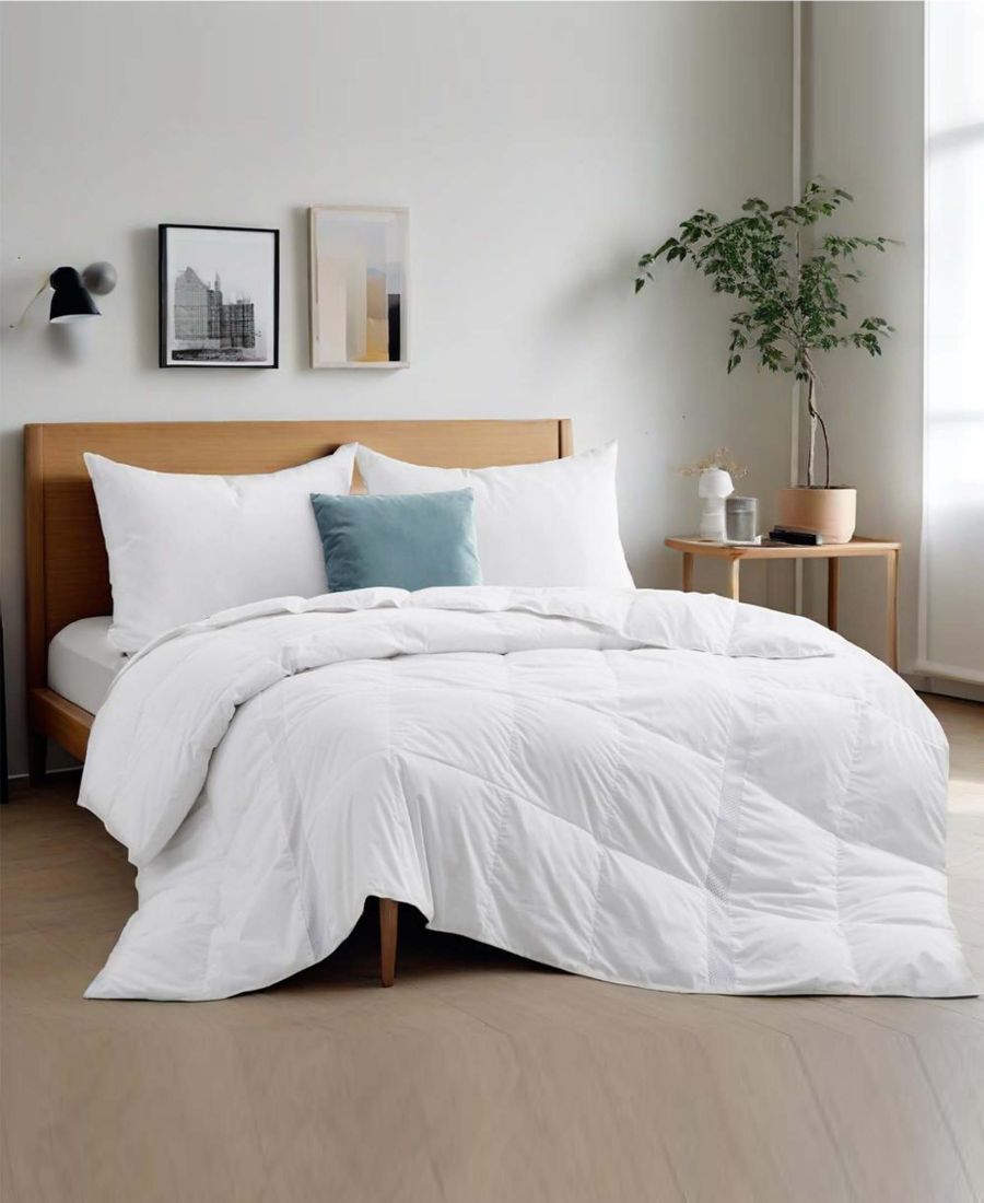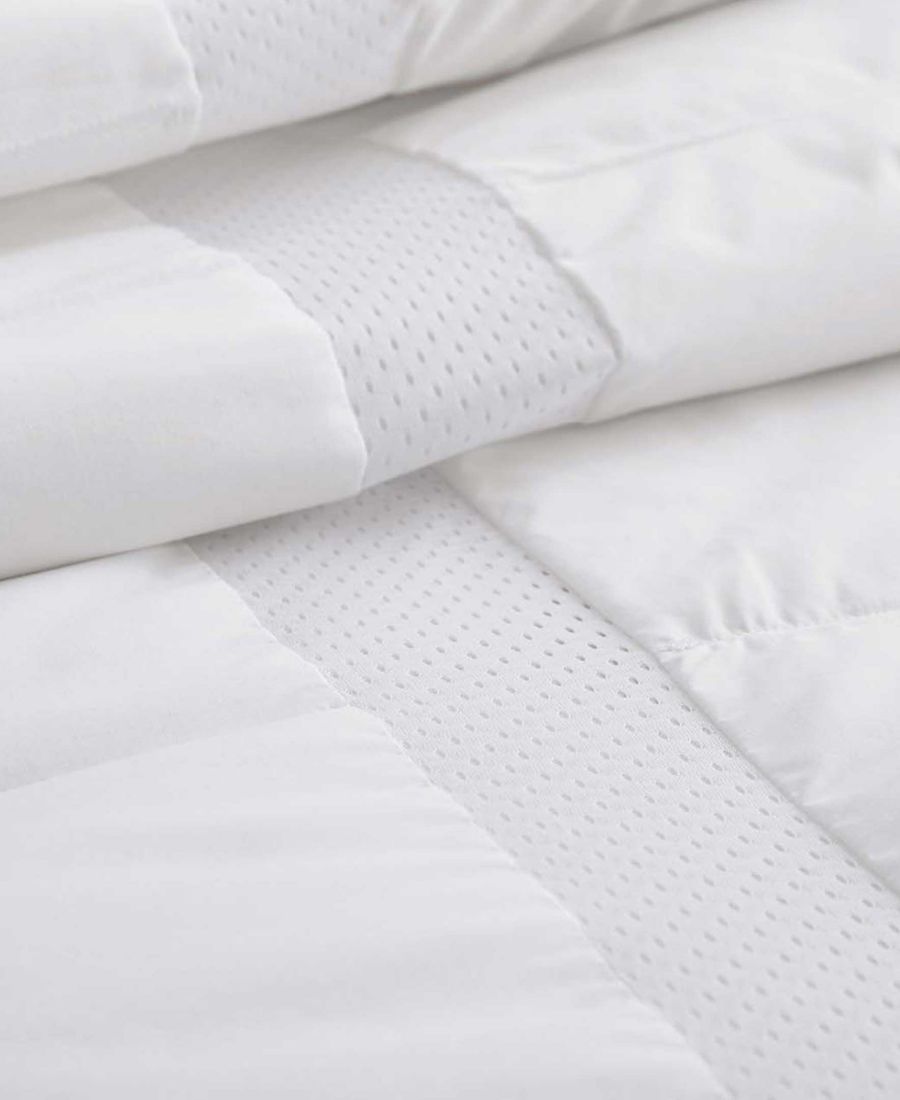 Улучшите качество своего сна и оставайтесь в прохладе жаркими летними ночами с этим легким и дышащим белым пуховым одеялом. Уникальная сетчатая ткань отводит избыточное тепло и регулирует температуру вашего тела во время сна, обеспечивая по-настоящему уютный сон.