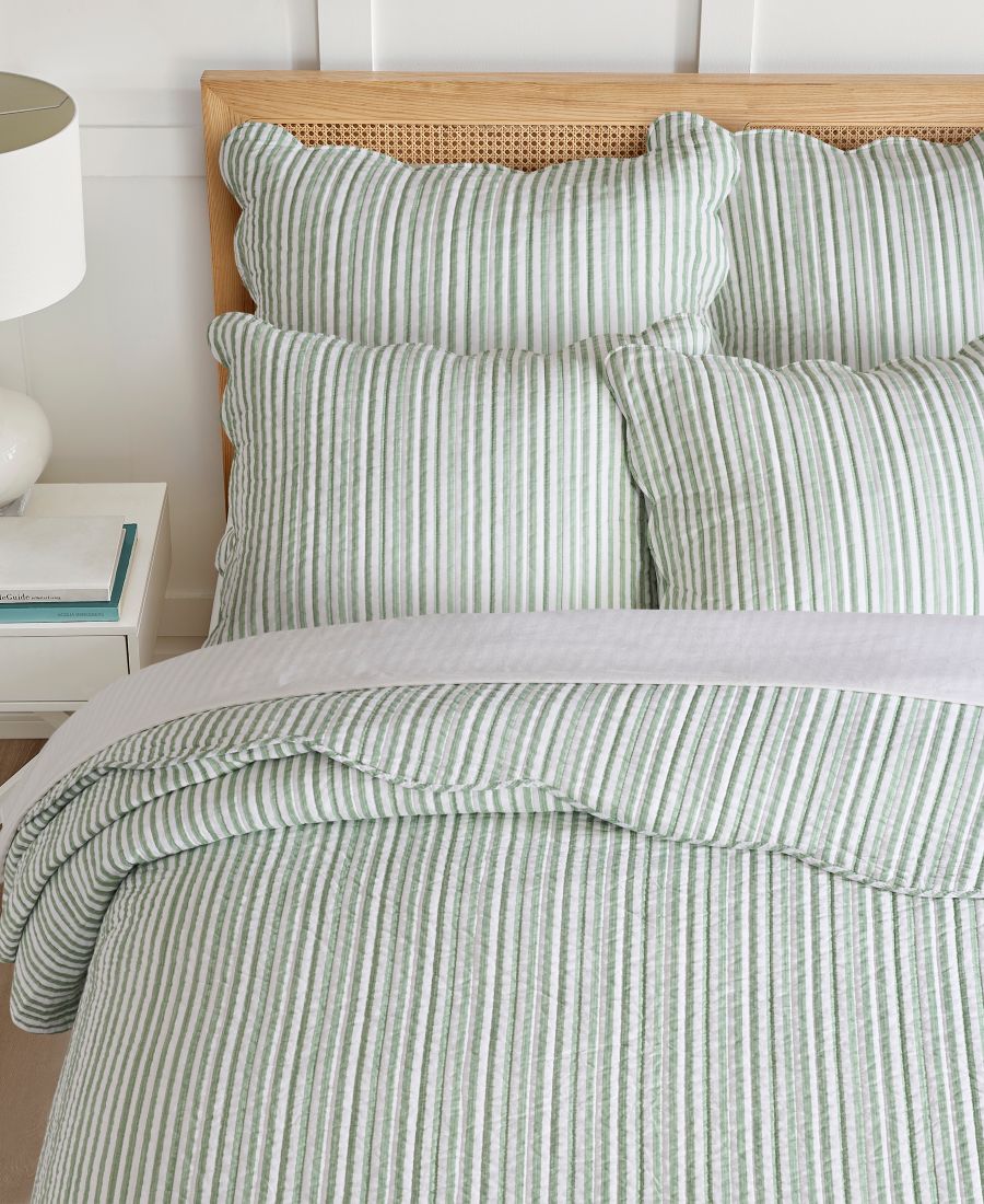 Бренд: Levtex Цвет: Sage Двустороннее стеганое одеяло Martha Stripe от Levtex Home вдохновлено очаровательной деревенской эстетикой и имеет полосатый узор с фестончатыми краями как с лицевой, так и с обратной стороны. Изготовлено из мягчайшего хлопка, обеспечивающего невероятно приятную на ощупь текстуру, которая вам непременно понравится. Наше одеяло имеет большой размер, чтобы придать вашей спальне ощущение комфорта и роскоши.