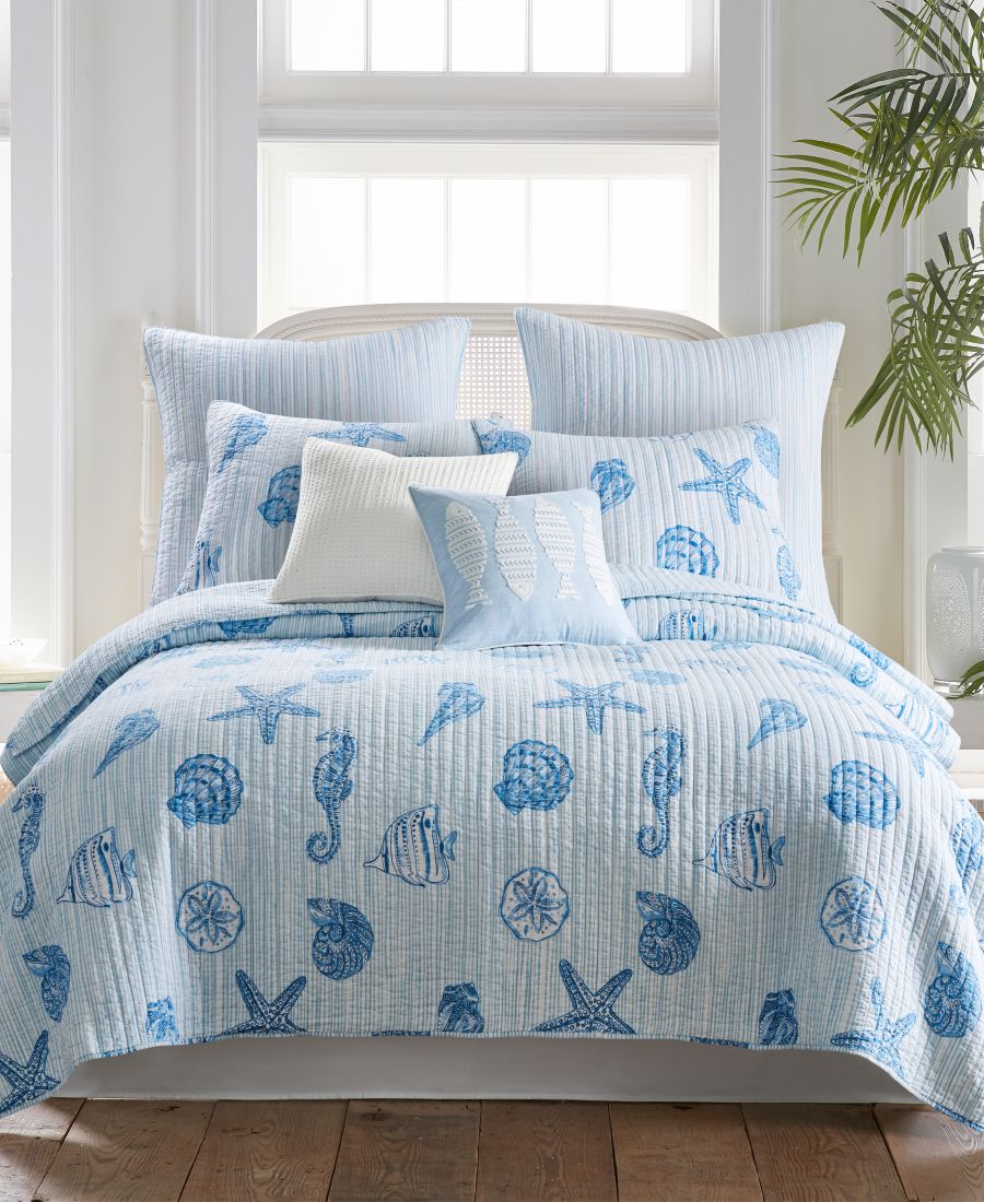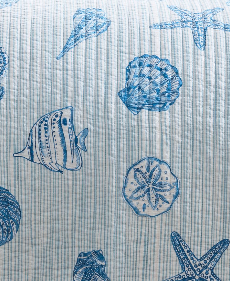 Бренд: Levtex Цвет: Blue Двустороннее стеганое одеяло Sandy Cove от Levtex Home вдохновлено морской жизнью, которую вы можете увидеть во время снорклинга. Коллекция ракушек и морских обитателей с характерной полосой по всей лицевой стороне и тонкой полосой с обратной стороны. Изготовлено из мягчайшего хлопка, обеспечивающего невероятно приятную на ощупь текстуру, которая вам обязательно понравится. Наше одеяло имеет большой размер, чтобы придать вашей спальне ощущение комфорта и роскоши.