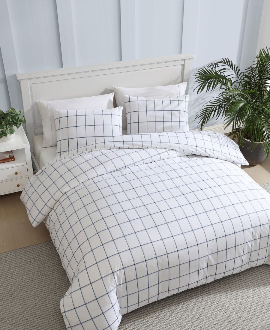 Легко обновите свою спальню с помощью комплекта постельного белья Plot от Nautica. Классический принт выполнен в виде оконной рамы, окаймленной двумя оттенками синего, на чистом фоне. Пододеяльник и наволочки изготовлены из перкаля, что обеспечивает приятные тактильные ощущения.