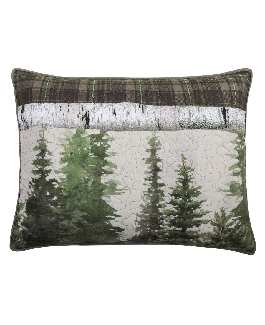 Бренд: Donna Sharp Цвет: Multi Этот очаровательный и стильный комплект постельного белья из стеганой микрофибры украшен изображением черной медведицы и ее детеныша в окружении сосен, берез и лесной клетчатой ткани. Цветовая гамма включает бежевый, оливково-зеленый, угольно-серый, белый и слоновую кость. Комплект размера кинг поставляется с наволочками размера кинг.