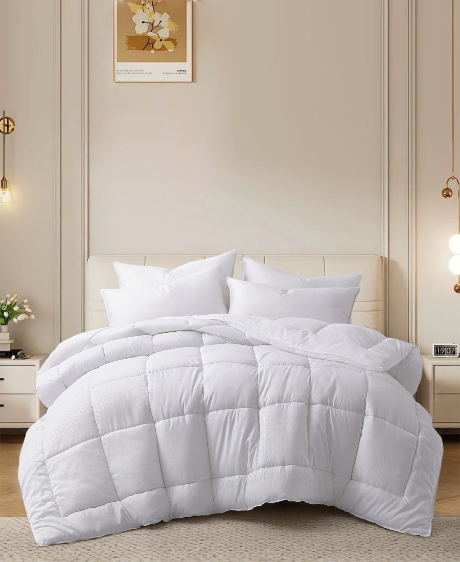 Стеганое одеяло средней плотности с наполнителем, имитирующим пух, размер Full/Queen UNIKOME, White