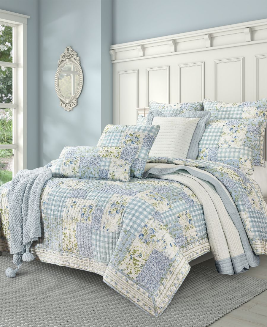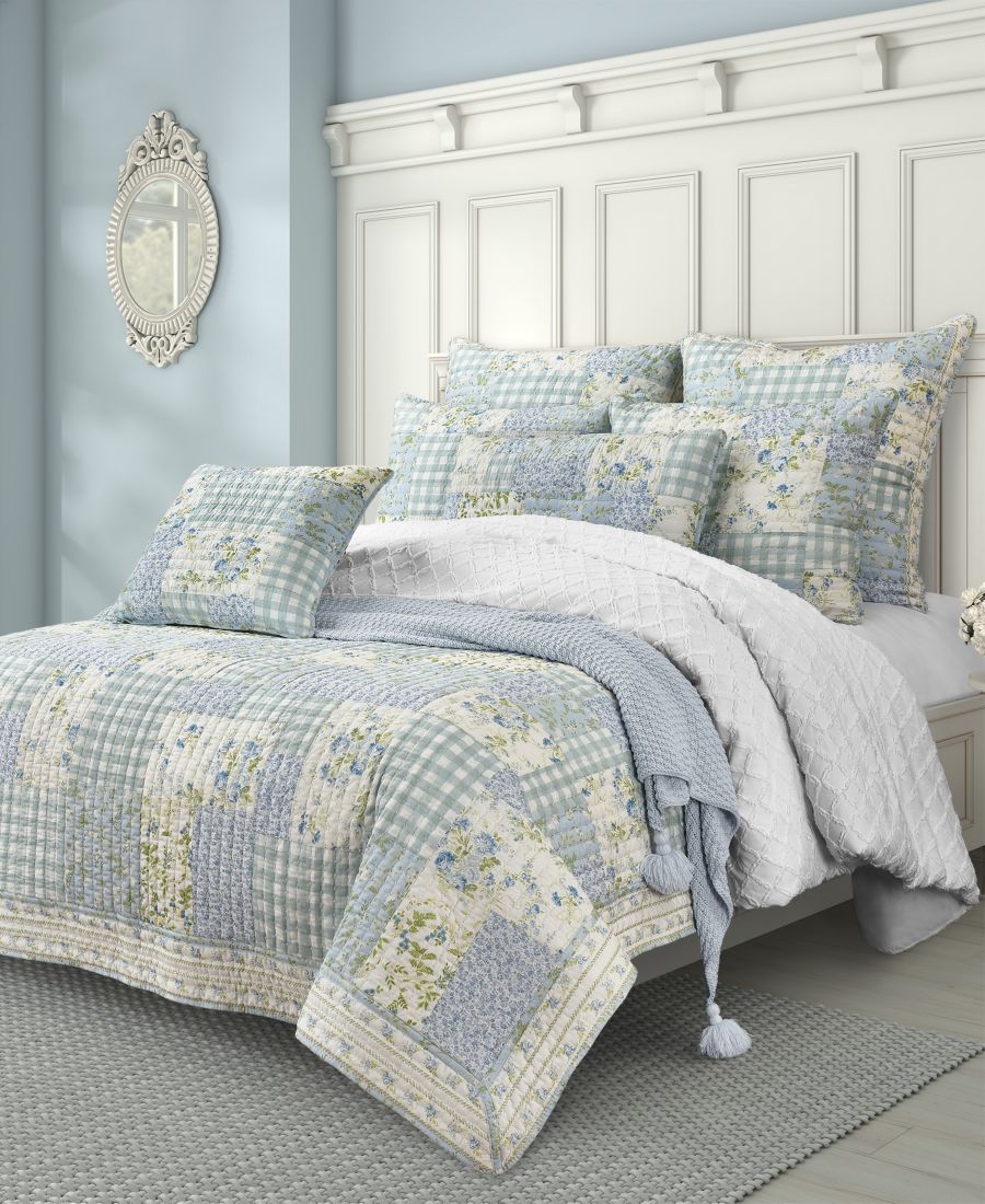 Бренд: Piper & Wright Цвет: Blue Создайте очаровательный интерьер в стиле кантри с помощью стеганого одеяла Karalena. Сочетание винтажных цветочных узоров и классической клетчатой ткани в успокаивающих оттенках синего, зеленого и белого добавит уюта и ностальгии в любую спальню. Одеяло выполнено в технике пэчворка с ручной вышивкой. Добавьте подушки и наволочки Karalena, чтобы завершить образ.