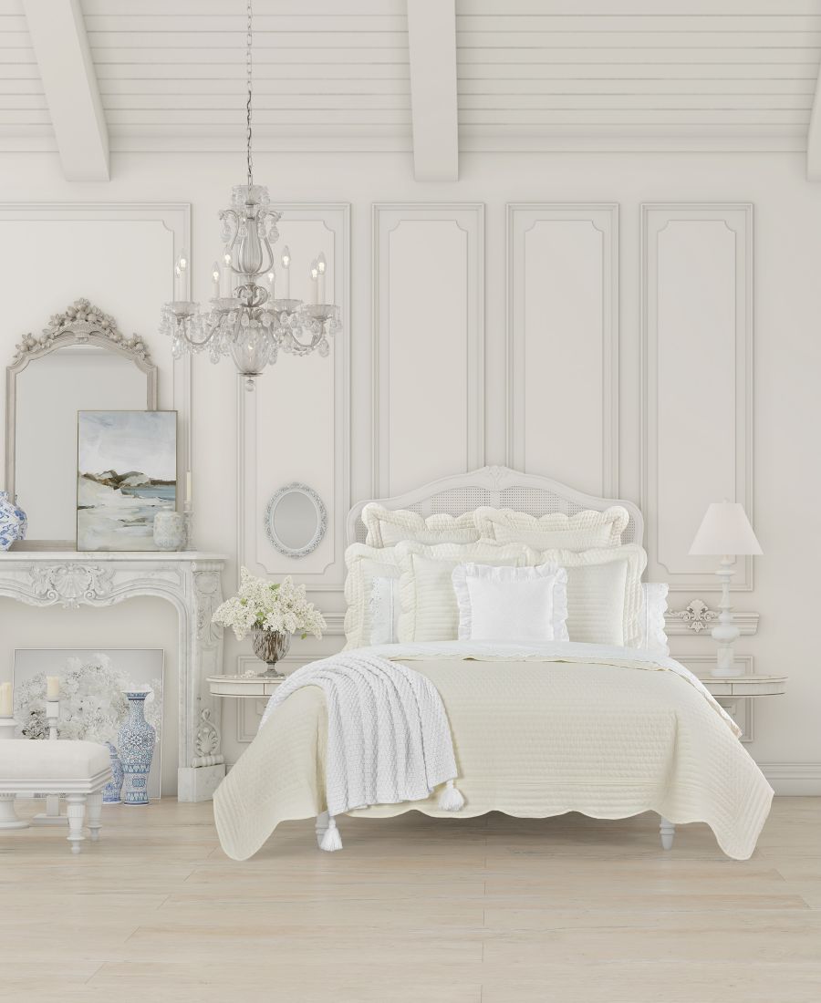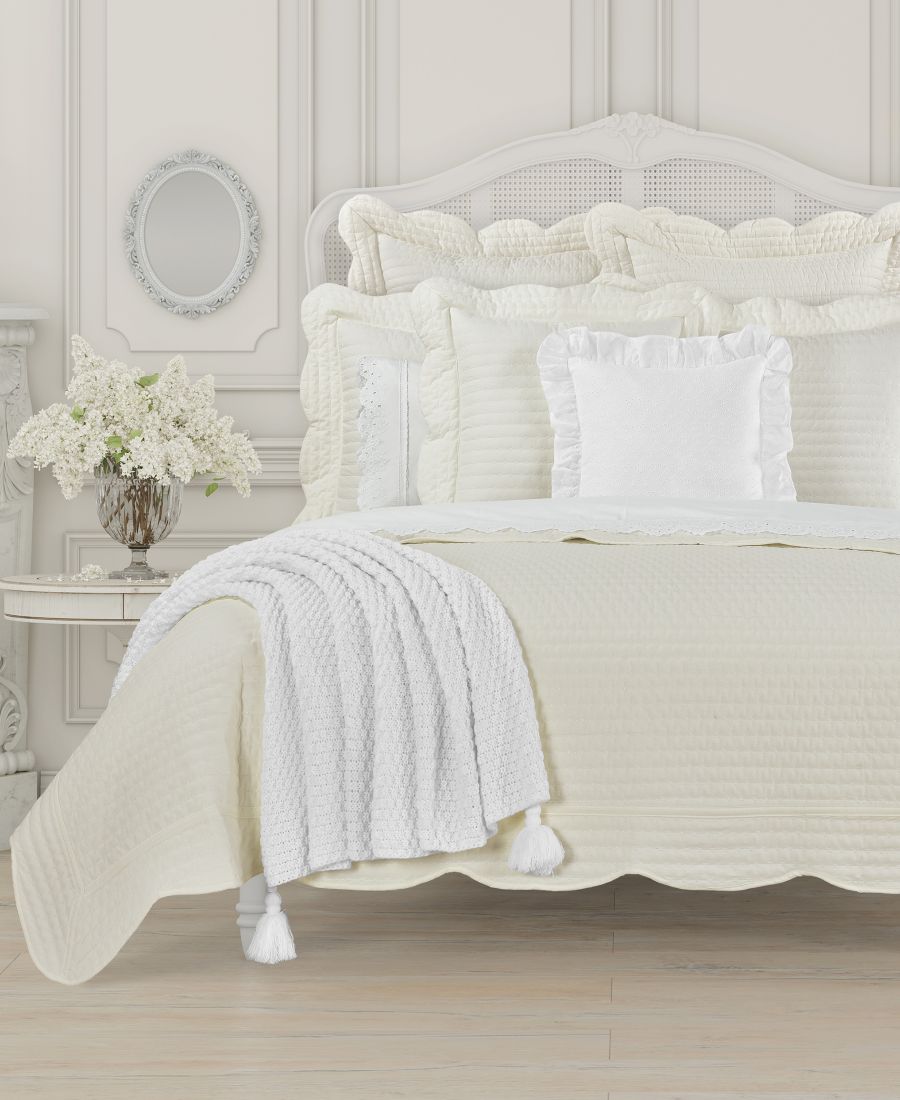Бренд: Piper & Wright Цвет: Cream Украсьте свою кровать стеганым одеялом Amherst с волнистым краем. Оно выполнено из белого хлопка в классическом стиле, с фестончатой отделкой шириной 5 дюймов по четырем сторонам и закругленными углами для создания эффекта драпировки. Мягкий предварительно выстиранный хлопок с обеих сторон придает этому легкому изделию приятную на ощупь текстуру.