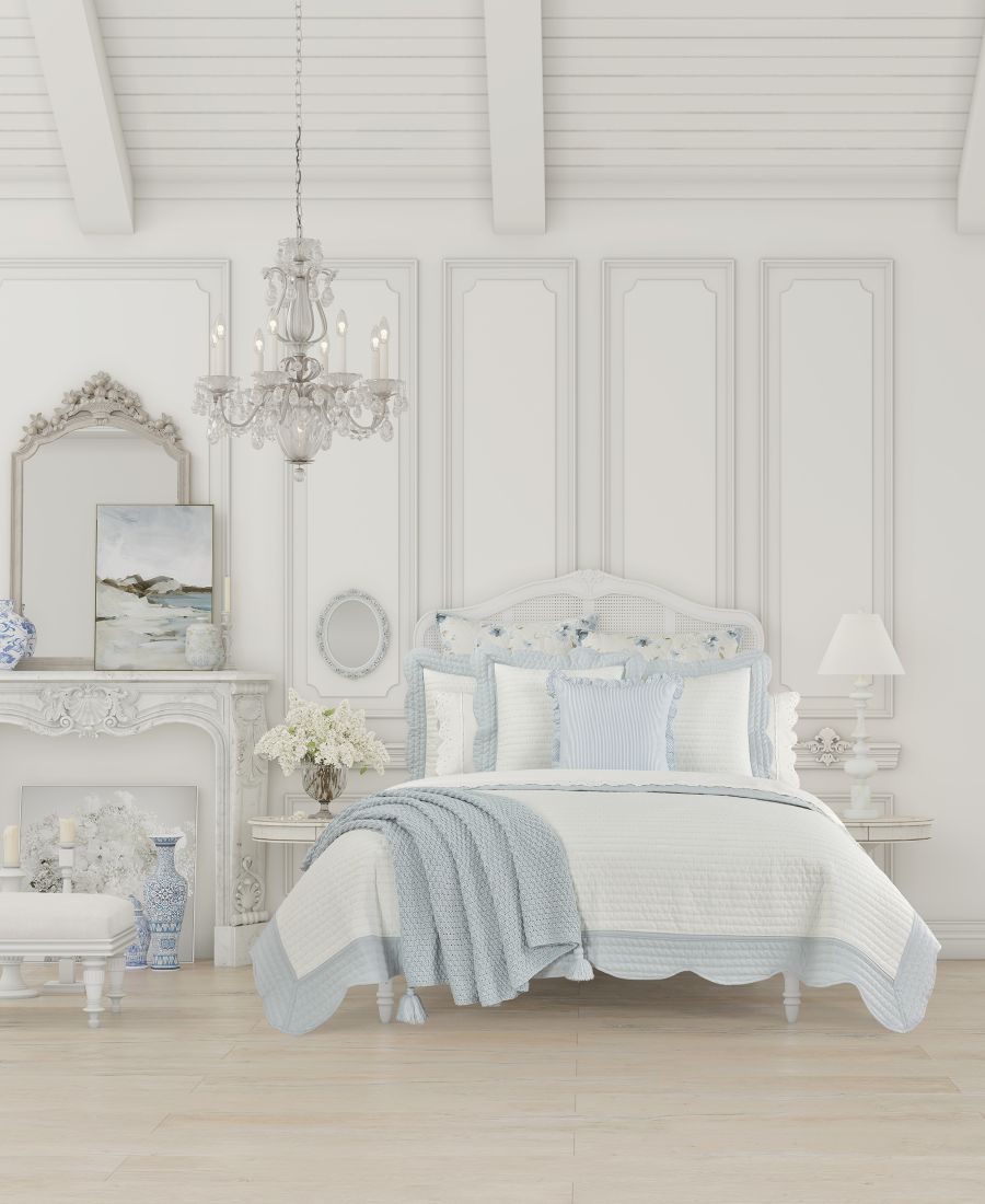 Наволочка для стеганого одеяла Amherst выполнена из белого хлопка и имеет свободную фестончатую окантовку с четырех сторон. Изготовлена из мягкого предварительно выстиранного хлопка с потайной молнией. Лицевая сторона и окантовка простеганы сложной канавочной строчкой, а обратная сторона выполнена в цвете окантовки.