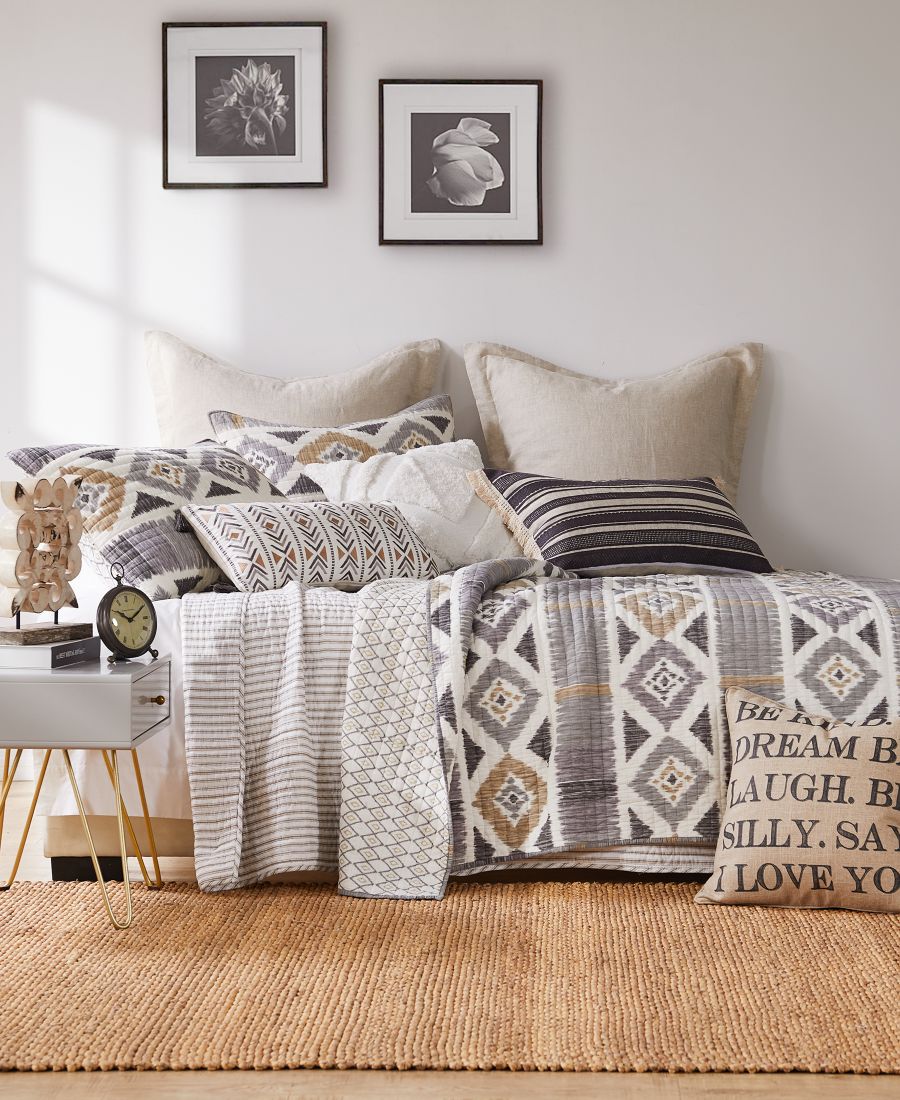 Комплект стеганого одеяла Levtex Home Santa Fe Twin Quilt включает одно одеяло размера Full/Queen серого и коричневого цветов. Коллекция Santa Fe, вдохновленная юго-западом США, отличается красивым геометрическим узором икат, который преобразит ваше пространство.