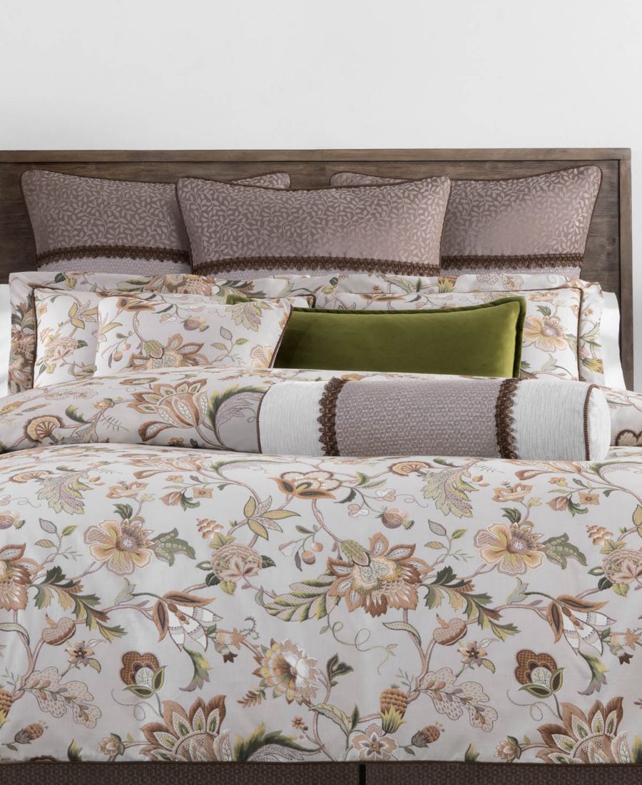 Коллекция Esmerelda - это изысканность и элегантность. Качество исполнения и роскошь прослеживаются во всей коллекции: удлиненная юбка для кровати и наволочки с застежкой на пуговицы делают этот ансамбль превосходным. Декоративные подушки и пододеяльники гармонично сочетаются, создавая завершенный декор комнаты.