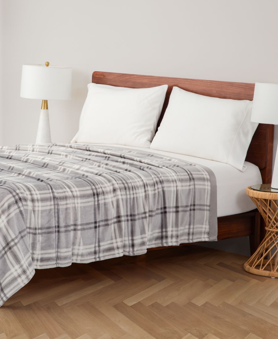 Классическое бархатистое плюшевое одеяло, размер King Berkshire, Grey Plaid 9 806₽