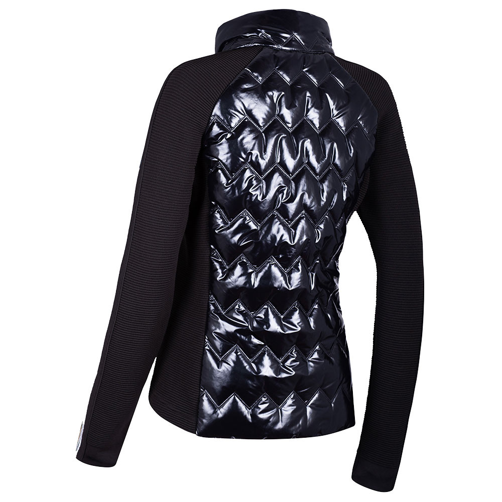 Куртка Newland Sundance сочетает в себе лучшее из двух миров. Стеганые детали и привлекательные элементы дизайна, такие как цветные полосы на рукавах и блестящие золотые акценты из люрекса, делают ее достаточно стильной для модниц, которые хотят выглядеть шикарно, перемещаясь по городу. Но секретное оружие этого промежуточного слоя - ткань DHtech Full 3D Power, которая имеет сверхэластичную систему камер и каналов, удерживающих тепло, легко впитывающих влагу и обеспечивающих полную свободу движений. Хотя она достаточно стильная для повседневной носки, она также идеально подходит в качестве промежуточного слоя, когда вы хотите быть активными и при этом выглядеть стильно в экстремальных температурах.