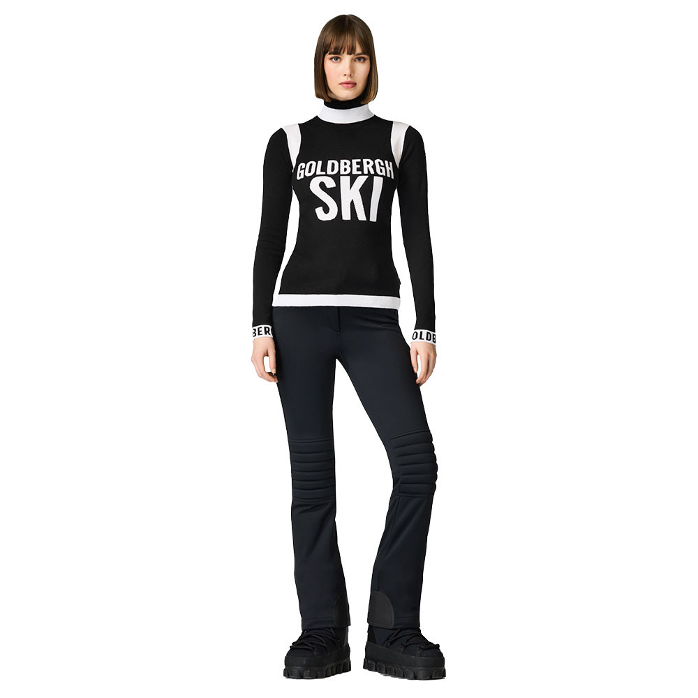 Свитер Goldbergh Noemi - это современный элемент многослойного образа, который невозможно игнорировать. Высококонтрастные цветовые блоки и выразительный текст - это только начало, когда речь идет об этом смелом и стильном свитере. Изготовленный из тонкой трикотажной ткани с интарсией, он имеет облегающий силуэт, подчеркивающий фигуру, и плотно прилегающий отложной воротник. Отлично подходит для ношения под горнолыжной курткой на склонах, этот невероятно мягкий трикотажный базовый слой сохранит тепло, не жертвуя при этом вашим изысканным стилем.