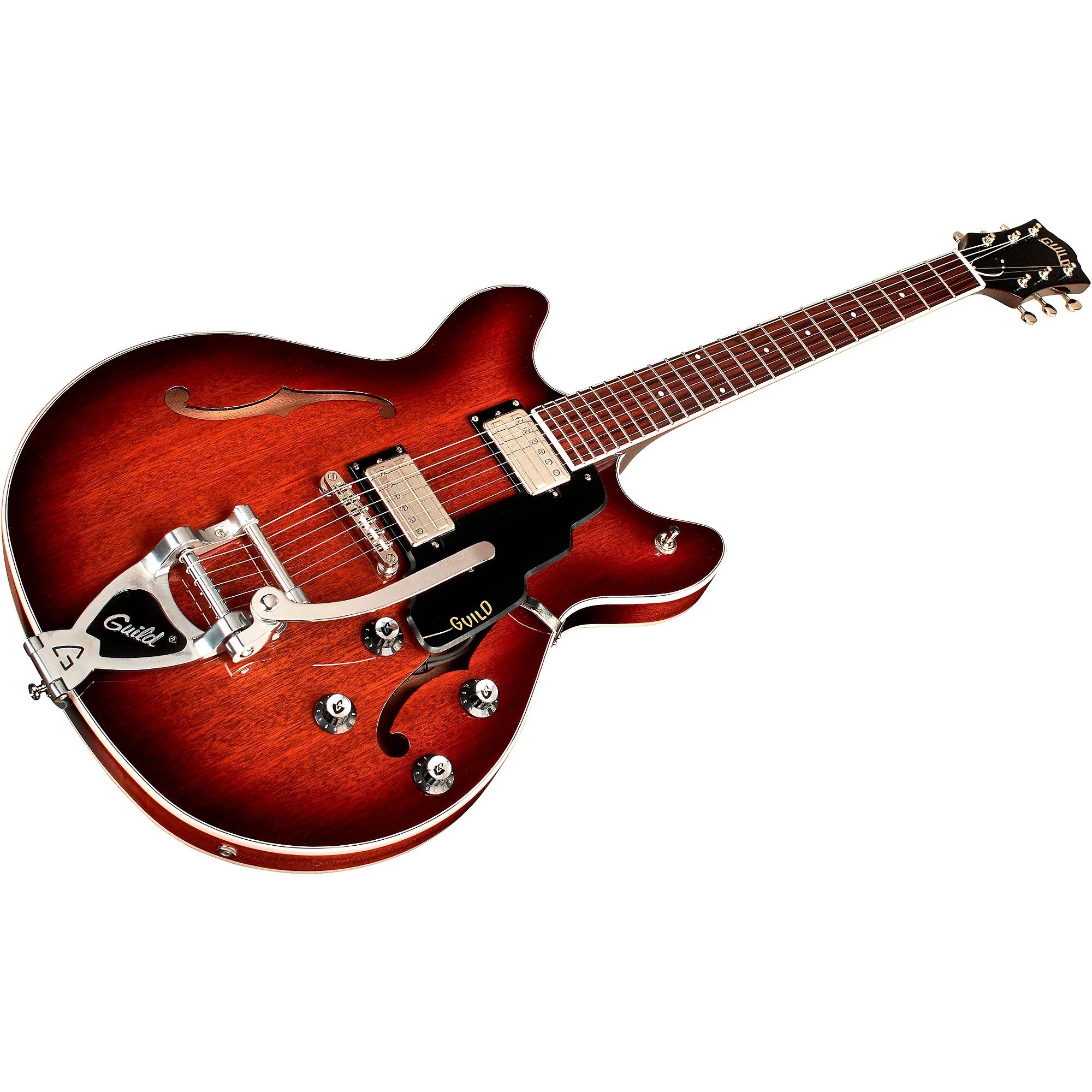 Starfire I DC с полуполым струнодержателем Guild Vibrato Характеристики электрогитары:
