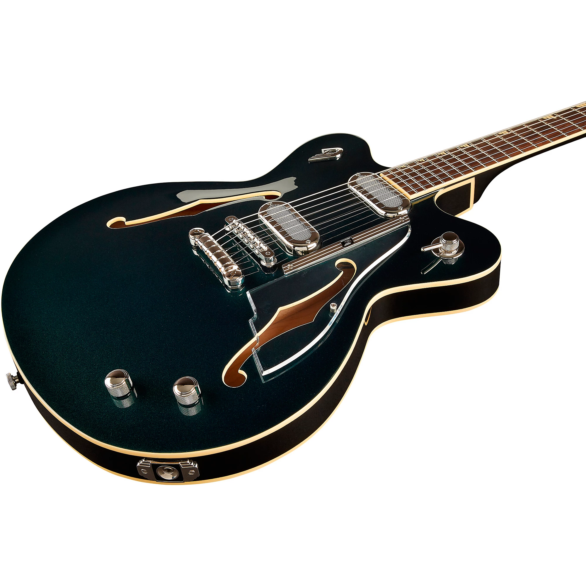 Эта полуакустическая гитара в ретро-стиле обладает широким тональным диапазоном. Созданная с культовым вниманием к деталям Duesenberg, Gran Majesto представляет собой стильную интерпретацию двухвырезной полуакустической электрогитары. От накладки грифа из индийского палисандра с обработкой Plek до расширенного тонального диапазона, создаваемого комбинацией сингл-койл звукоснимателя Phonico P90 и хамбакера GrandVintage, это гитара, которая обеспечивает феноменальное звучание - от чистого и джазового до полного рок-н-ролльного хаоса. Арочная двухрезонаторная деки из ламинированной ели и арочная ламинированная задняя дека из клена работают вместе с массивным центральным блоком для теплого, полного звука с обильным сустейном. Многофункциональные ременные кнопки Kluson - приятное дополнение, а открытые механизмы Z-tuner придают нотку винтажного стиля. Gran Majesto поставляется в роскошном жестком футляре.
