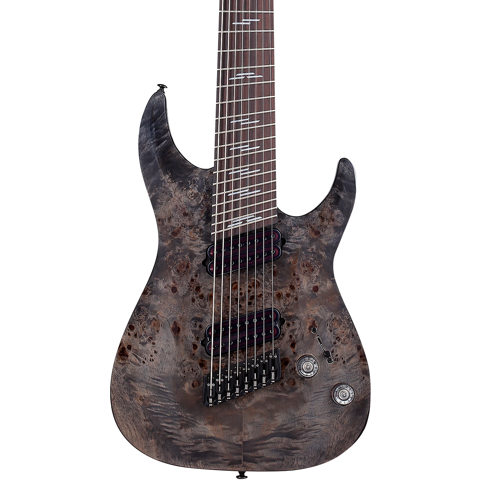 Жесткая многомасштабная 8-струнная гитара с двумя хамбакерами и тонкой шейкой C.