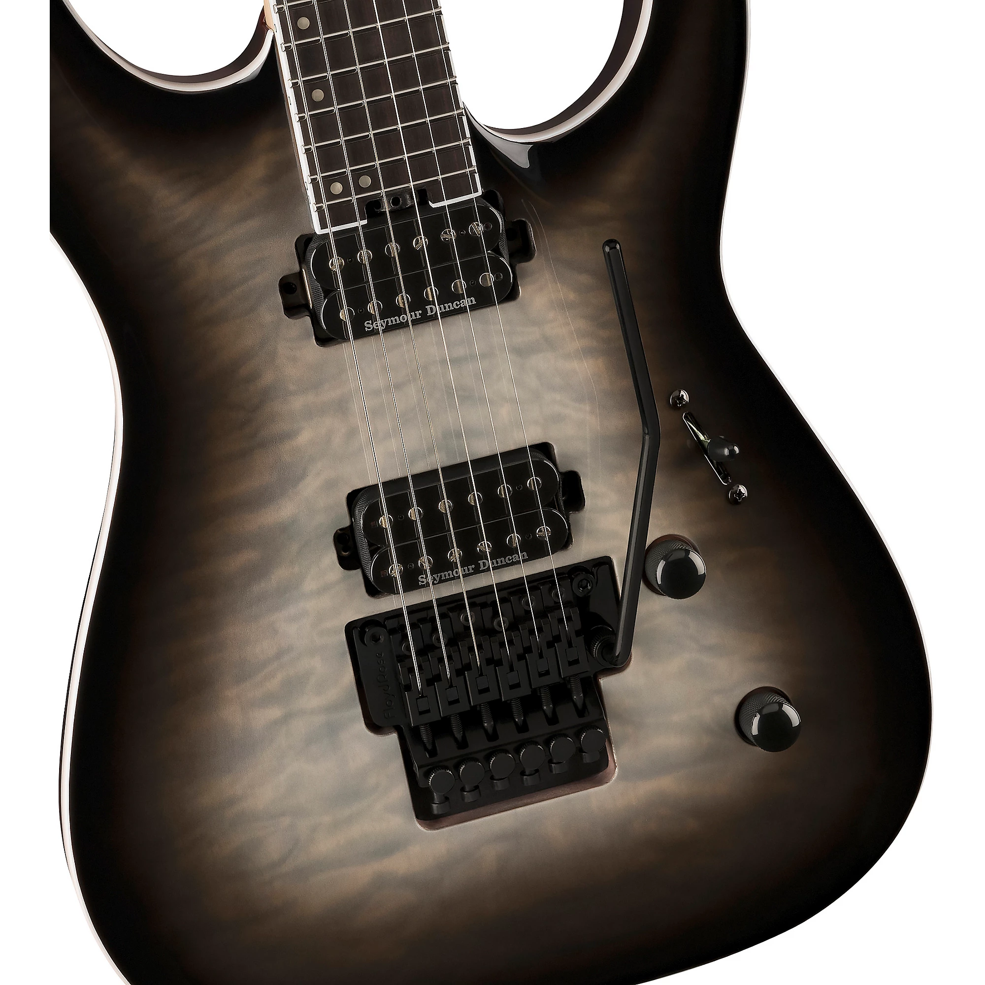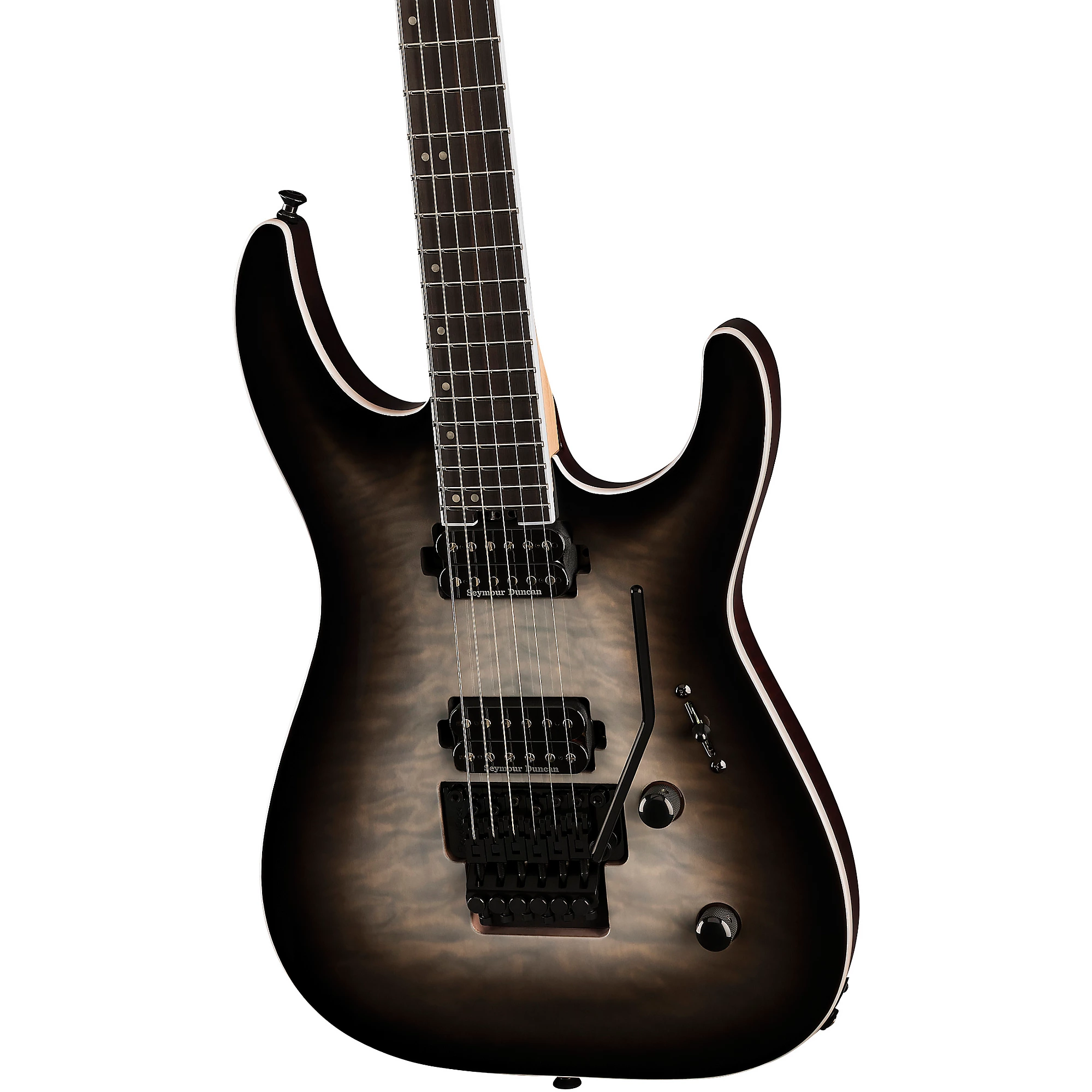 Гитара для экстремального шреда с арочной декой из окуюме и прямым креплением звукоснимателей Seymour Duncan.