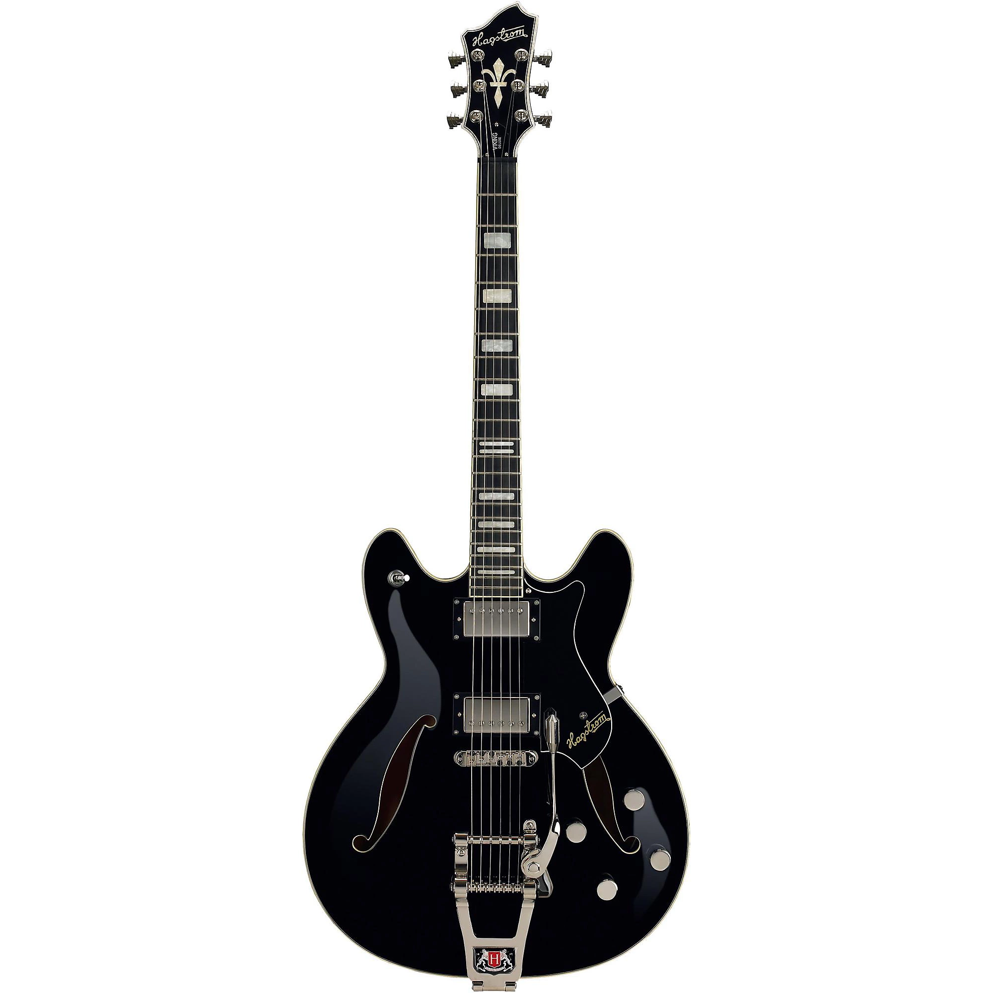 Элегантная полупустотелая гитара с двумя хамбакерами и тремоло. Готовая к любому вызову, электрогитара Hagstrom Tremar Viking Deluxe сразит конкурентов своим верхом из тщательно отобранного кленового шпона с эффектной текстурой и роскошным покрытием. Это полупустотелая гитара с установленной грифовой рамой из канадского твердого клена. Грифовая накладка выполнена из Resinator - композитного древесного материала, однородного по структуре и более стабильного, чем обычная древесина. Струнодержатель H-Expander обеспечивает натяжение на обоих концах и проходит по всей длине грифа. Жесткий, но легкий сплавной струнодержатель позволяет достичь низкого действия струн и тонкого грифа. Два звукоснимателя HJ-50 подключены к 3-позиционному переключателю с отдельными регуляторами громкости и тембра. Вибрато Hagstrom Tremar с мостиком tune-o-matic обеспечивает стабильность строя даже после самых экстремальных приемов игры.