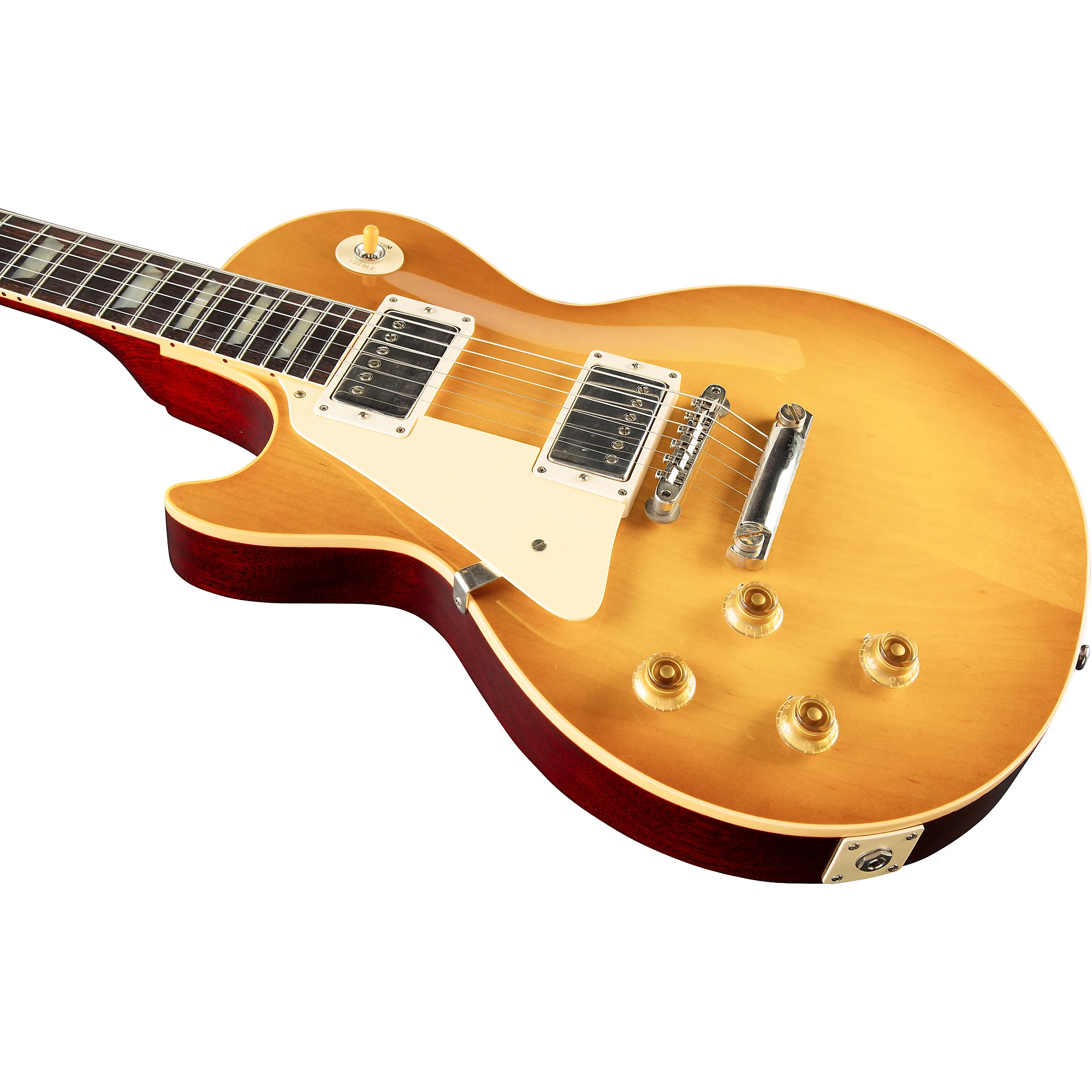 Историческое переиздание, изготовленное из клена и красного дерева с двойными звукоснимателями Custombucker Alnico III.