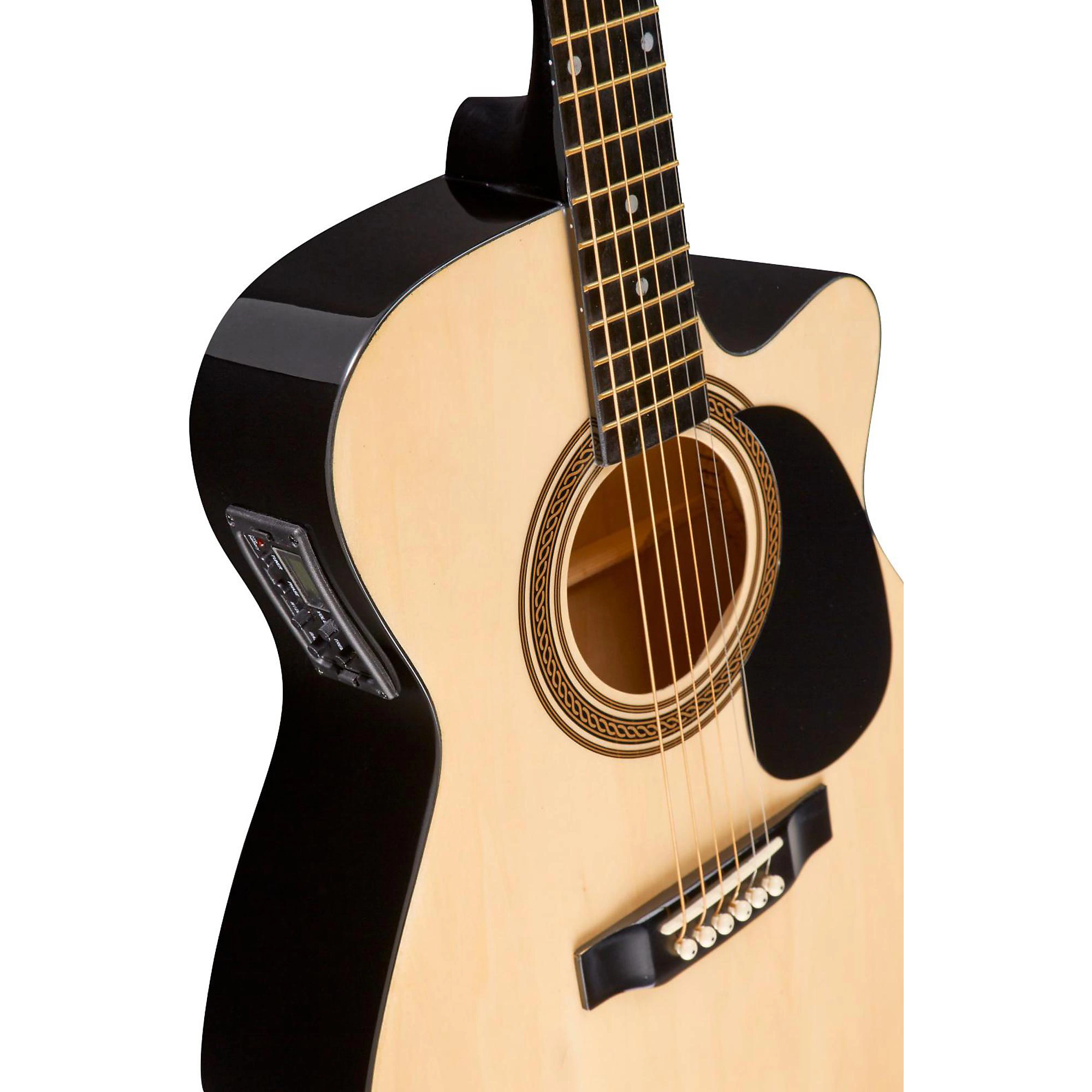 Супердоступная акустико-электрическая гитара Rogue RA-090 Concert - отличный вариант для начинающих с мензурой 25,4 дюйма, корпусом и верхней декой из ламинированного белого дерева, покрытых натуральным глянцем, который сохраняет гитару в отличном состоянии на долгие годы. Другие особенности включают один вырез для облегченного доступа к ладам, гриф в форме C из нато, накладку и бридж, имитирующие розовое дерево, а также планку и порожек из пластика цвета слоновой кости. Завершает набор великолепных характеристик система звукоснимателей Eden MET-A06 с пьезозвукоснимателем под мостом, 3-полосным эквалайзером и тюнером.
