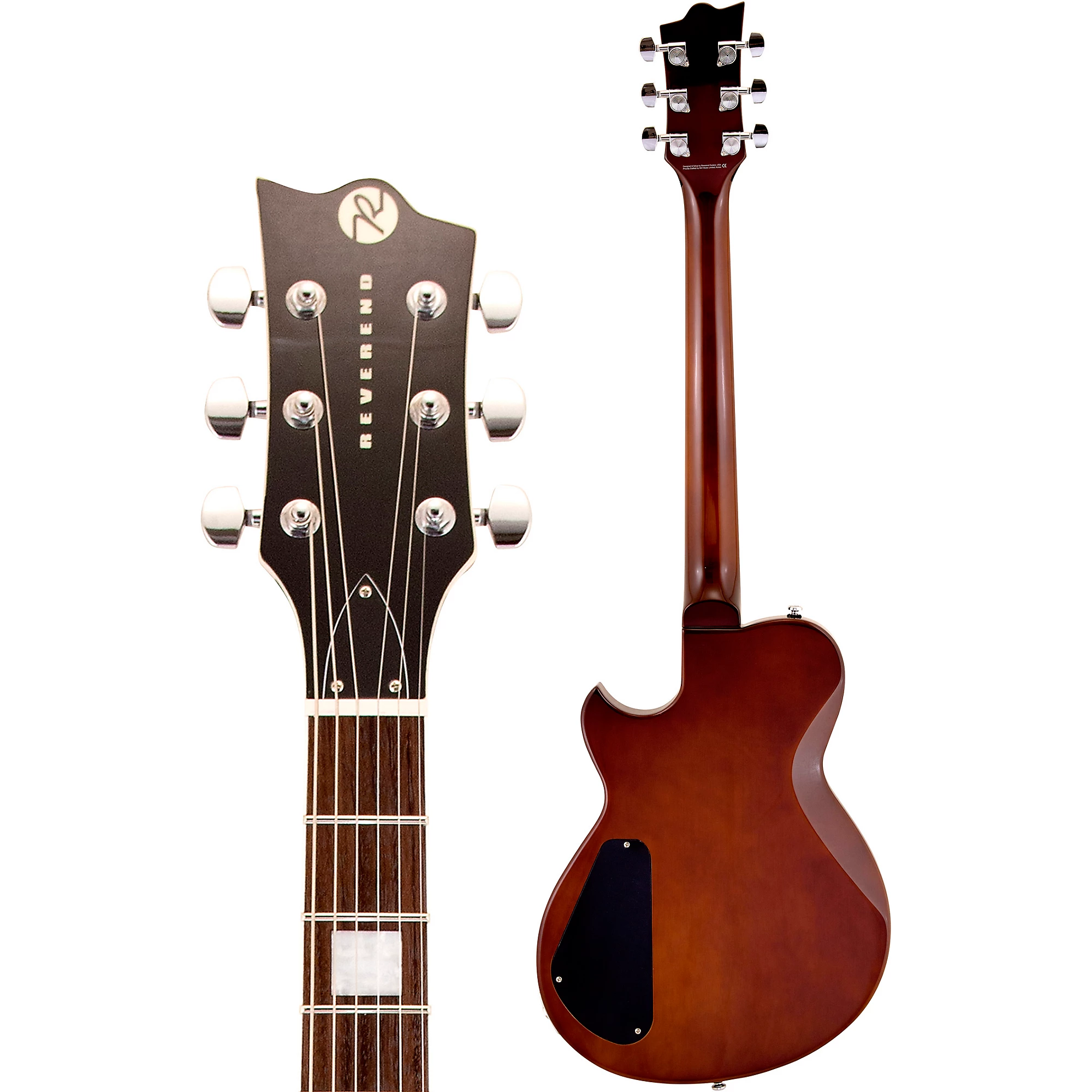 Reverend Roundhouse - это классическая однорезная гитара, переосмысленная для современных музыкантов. Первая гитара Reverend с вырезанной верхней декой и установленной шеей, электрогитара Roundhouse обеспечивает мощное звучание, оставаясь при этом легкой и сбалансированной. Оснащенная хамбакерами HA5 на грифе и бридже, бриджем Tune-O-Matic stoptail и грифом из пау ферро, эта шестиструнная солидбоди предлагает универсальное звучание, комфорт при игре и немного стиля.