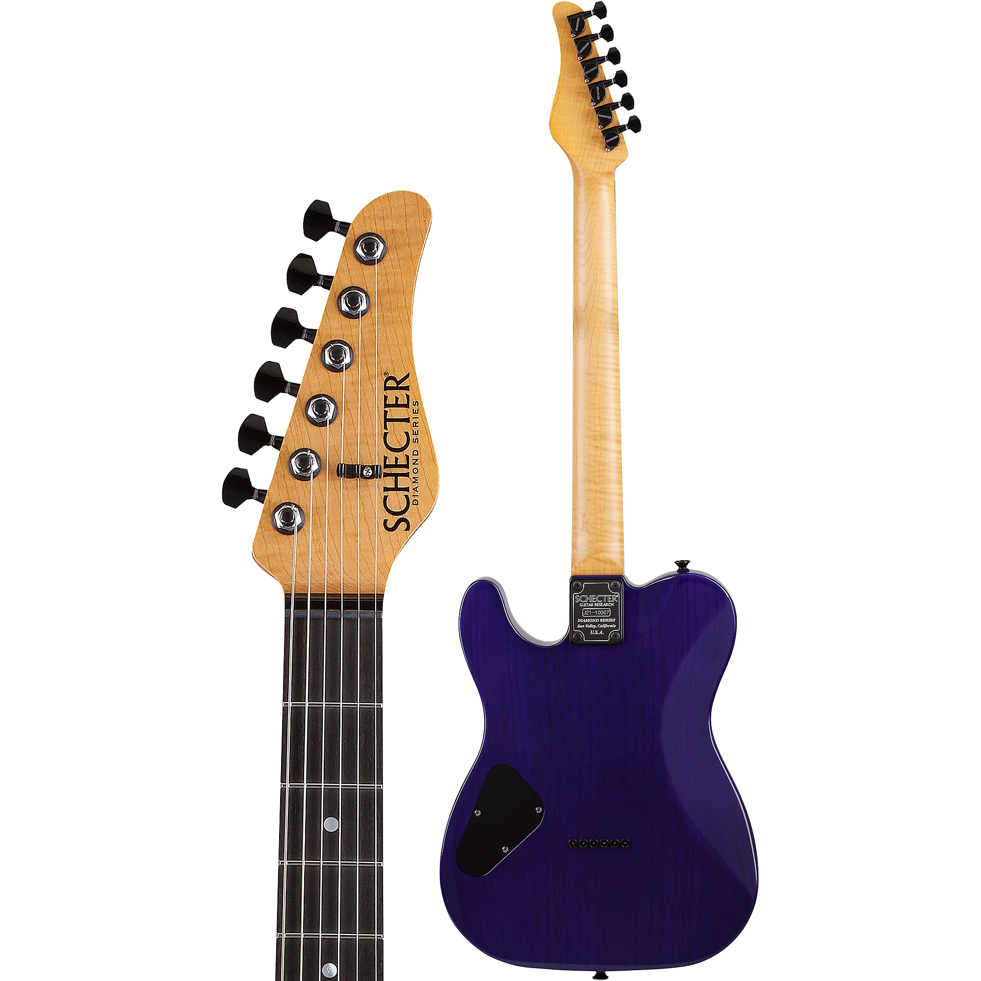 Корпус из полого махагони с крышкой из кленовой древесины с рисунком, гриф из клена с фактурой «флейм» и звукосниматели Schecter USA. PT Classic от Schecter создан для традиционного стиля, комфорта и удобства игры. Эта электрогитара выполнена с полым корпусом из махагони с кленовой крышкой, грифом из «флейм» клена и накладкой из черного дерева. Гриф имеет форму C, радиус 14 дюймов и 22 джамбо лада. PT Classic оснащена двумя звукоснимателями Schecter USA Pasadena для мощных, но контролируемых риффов. Дополнительно установлены блокирующие колки Schecter Nouveau, мост Schecter Nouveau Hardtail и порожек Graph Tech Black TUSQ XL. В комплект также входит премиальный винтажный кейс из дерева с мягкой серой подкладкой.