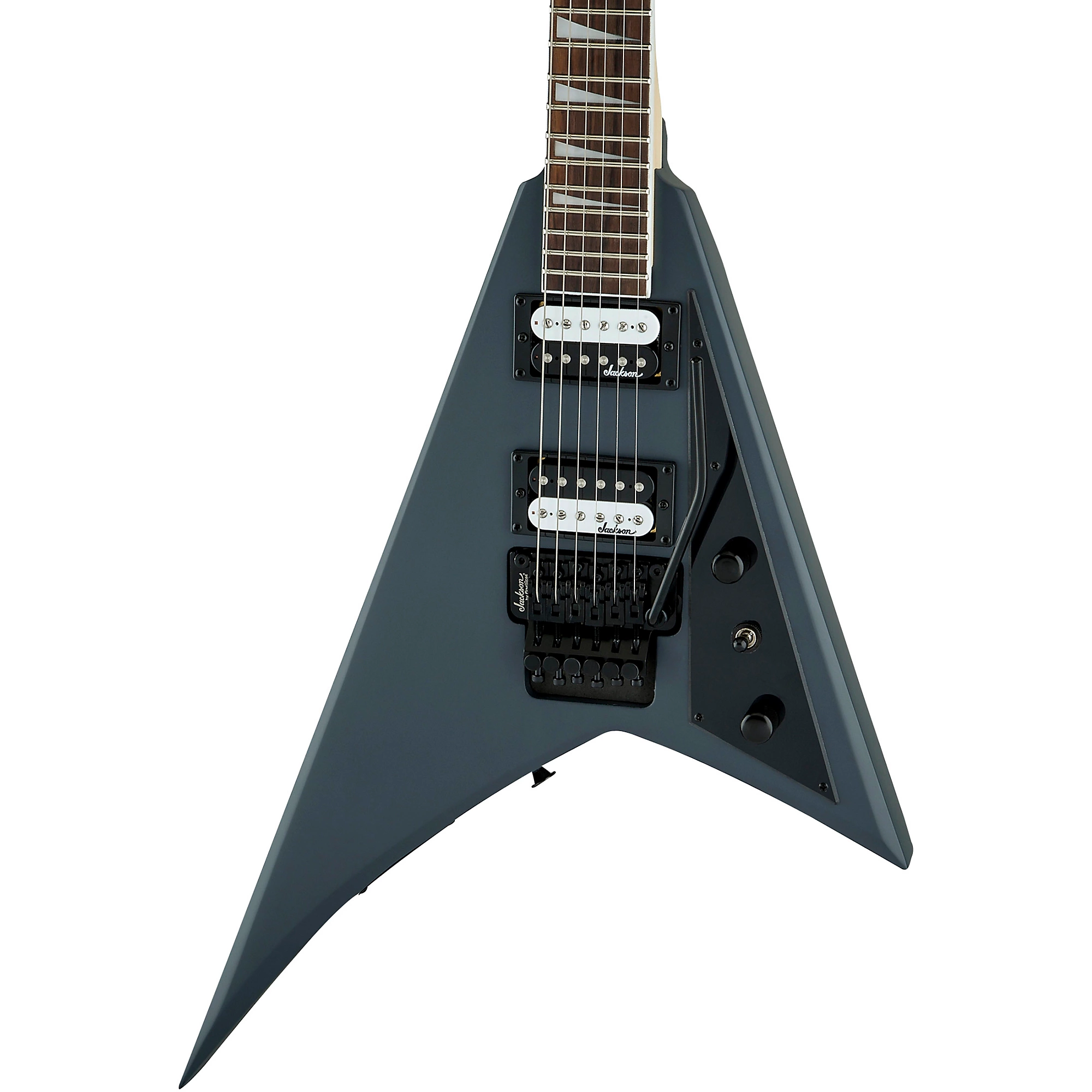 Rhoads JS32 имеет корпус из тополя и съемную грифовую шейку из клена с графитовым усилением и скользящим соединением для надежной стабильности. На грифе установлены 24 джамбо-ладов и накладки в виде акульих плавников из перламутра. Лады и накладка из полностью огражденного розового дерева с компаундным радиусом 12”-16” создают идеальную поверхность для насыщенных риффов и легкого перебора возле верхнего порожка, постепенно выравниваясь на верхних позициях для молниеносных соло и широких бендов без риска переликования. Другие особенности включают двойные высокоэффективные хамбакеры Jackson с керамическими магнитами, один регулятор громкости и тембра, трехпозиционный переключатель, лицензированный мост Floyd Rose с двойным замком марки Jackson и герметичные литые колки.