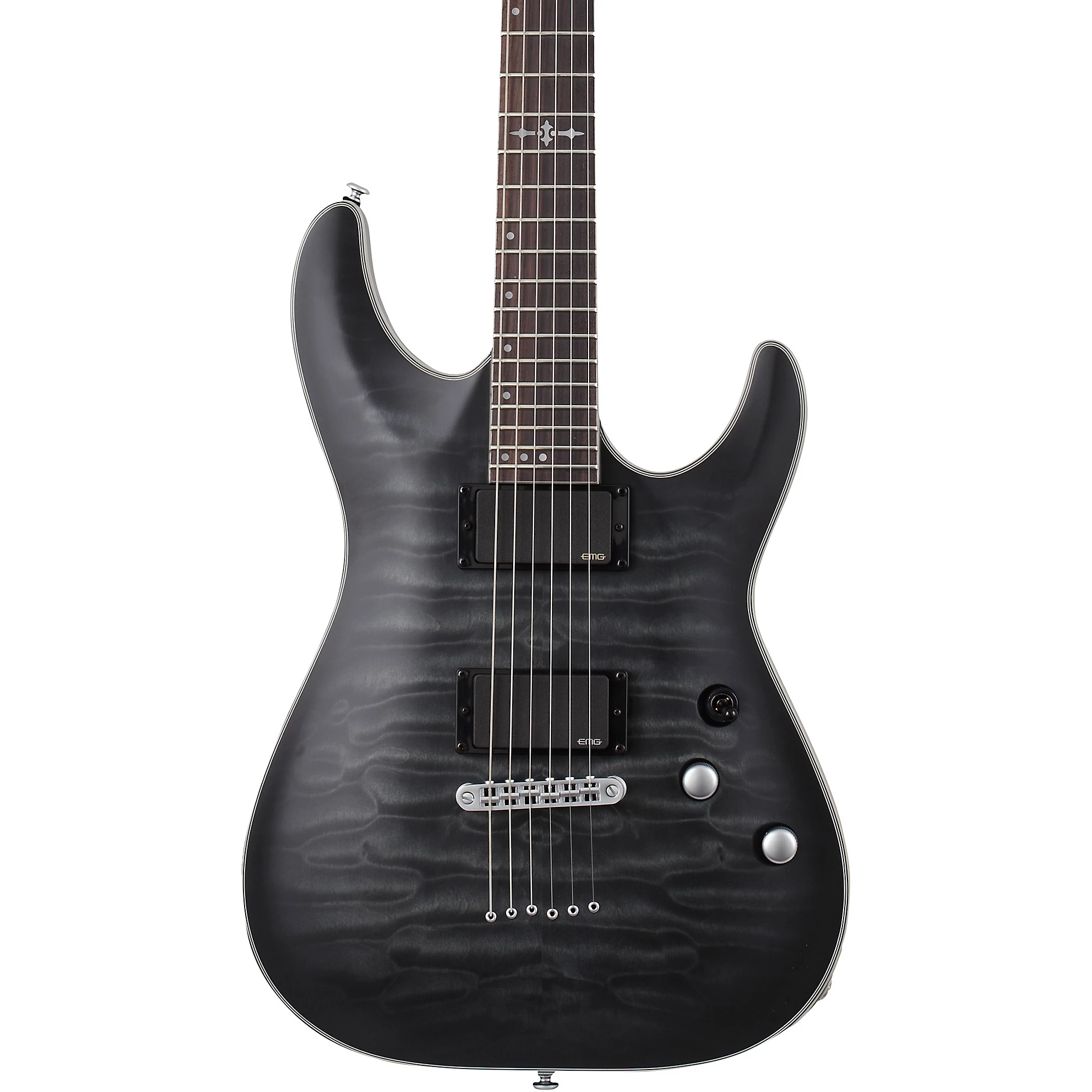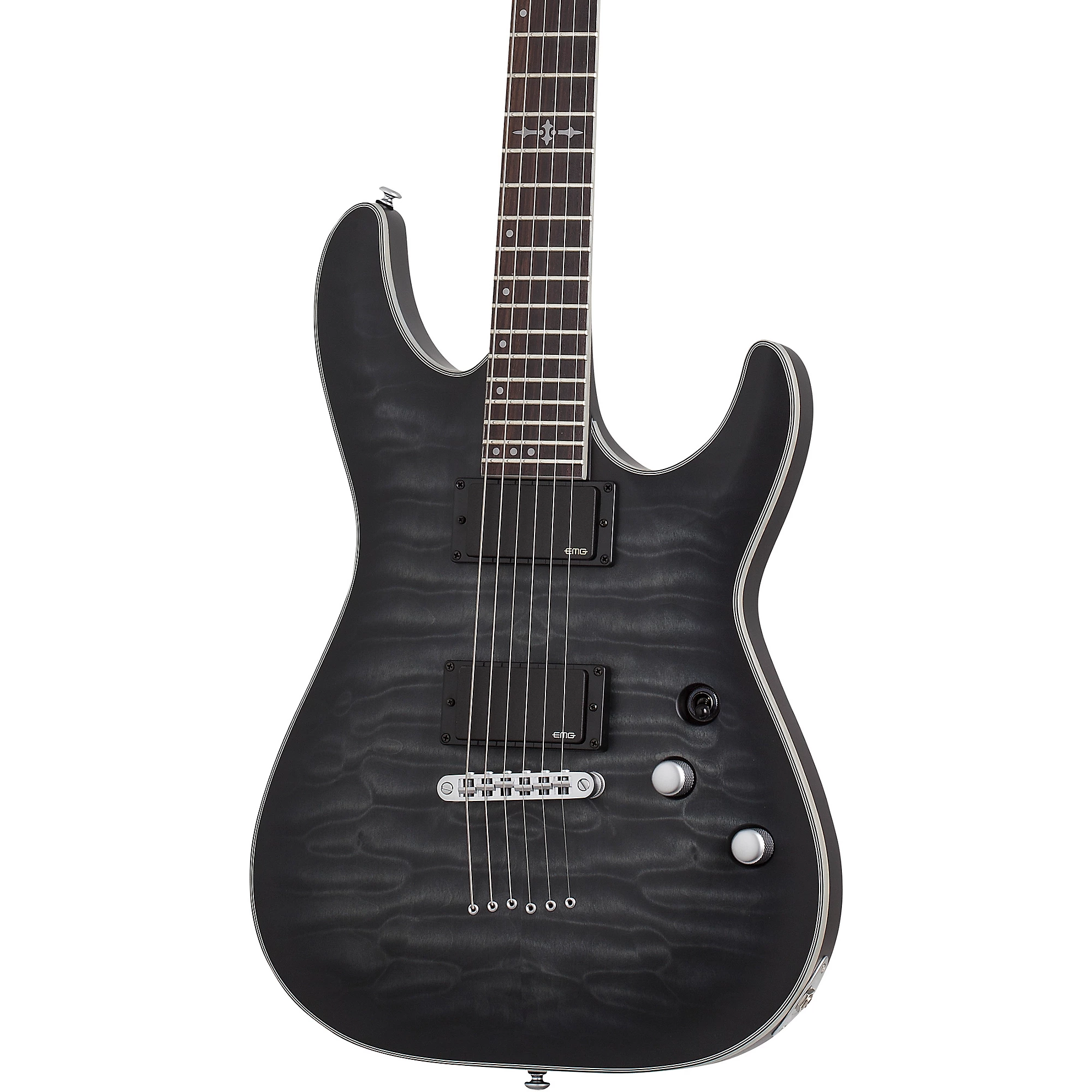 Электрогитара Schecter Platinum с установленной грифовой дека и активными звукоснимателями EMG.