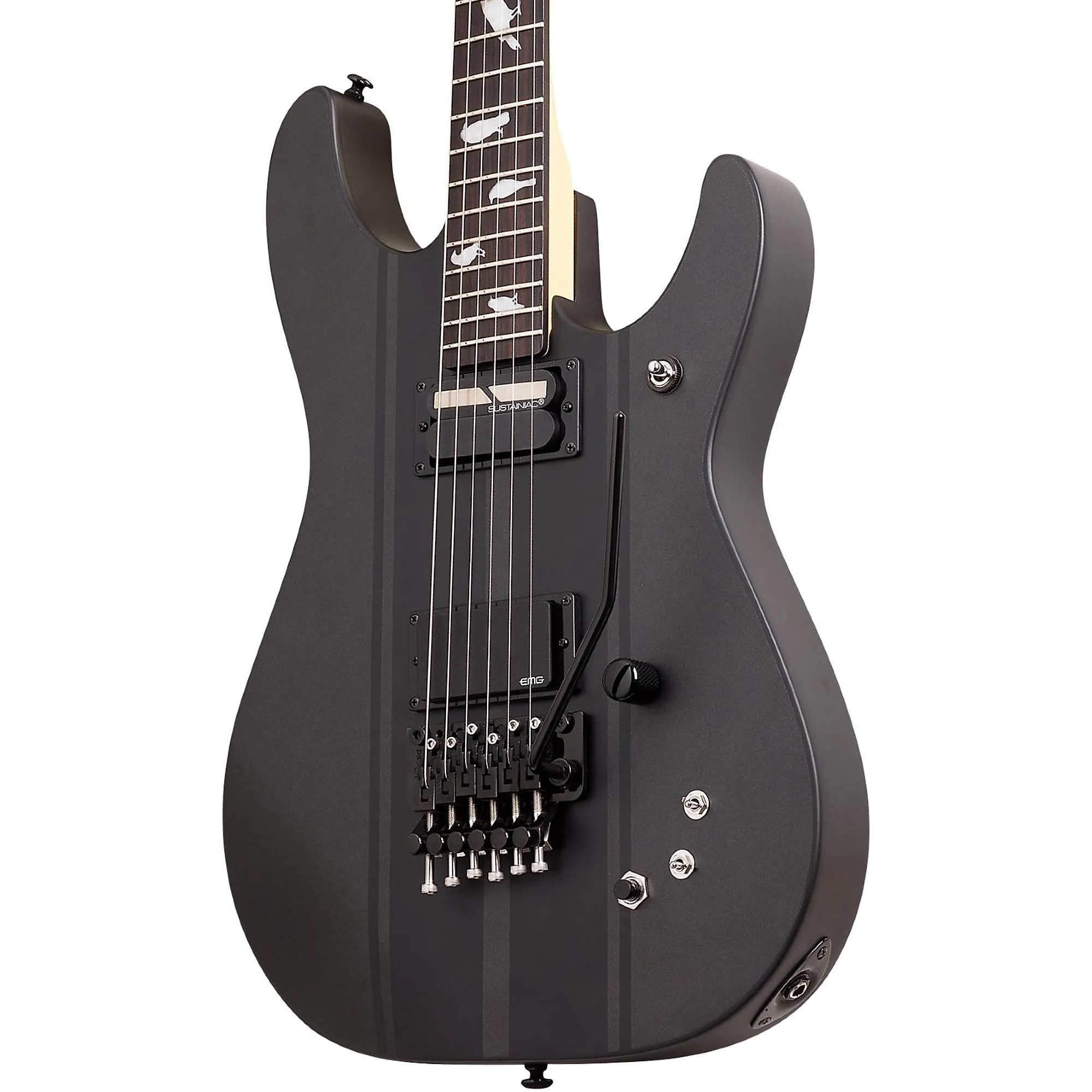 Фирменный стиль, быстрая игра на грифе и электроника Sustainiac. Электрогитара Schecter DJ Ashba Signature предлагает современному гитаристу уникальный опыт игры с достаточной мощностью для любого жесткого рок-исполнения. Созданная для сцены, она оснащена корпусом из ольхи с плоской декой, окрашенным в угольно-серый цвет, с впечатляющей инкрустацией на крепленом грифе из клена. Электроника действительно оживляет эту металлическую машину и она сверхмощная. DJ Ashba поставляется с системой Sustainiac. Этот драйвер/синглпик-ап производит красивые хамбакерные тона, когда переключатель Sustain выключен, и работает как драйвер Sustainiac, когда включен. Драйвер Sustainiac создает бесконечное удержание вибраций струн с помощью электромагнитной обратной связи. Черное оборудование включает тюнеры Grover и тремоло Floyd Rose для высокопроизводительного выражения. Чехол продается отдельно.