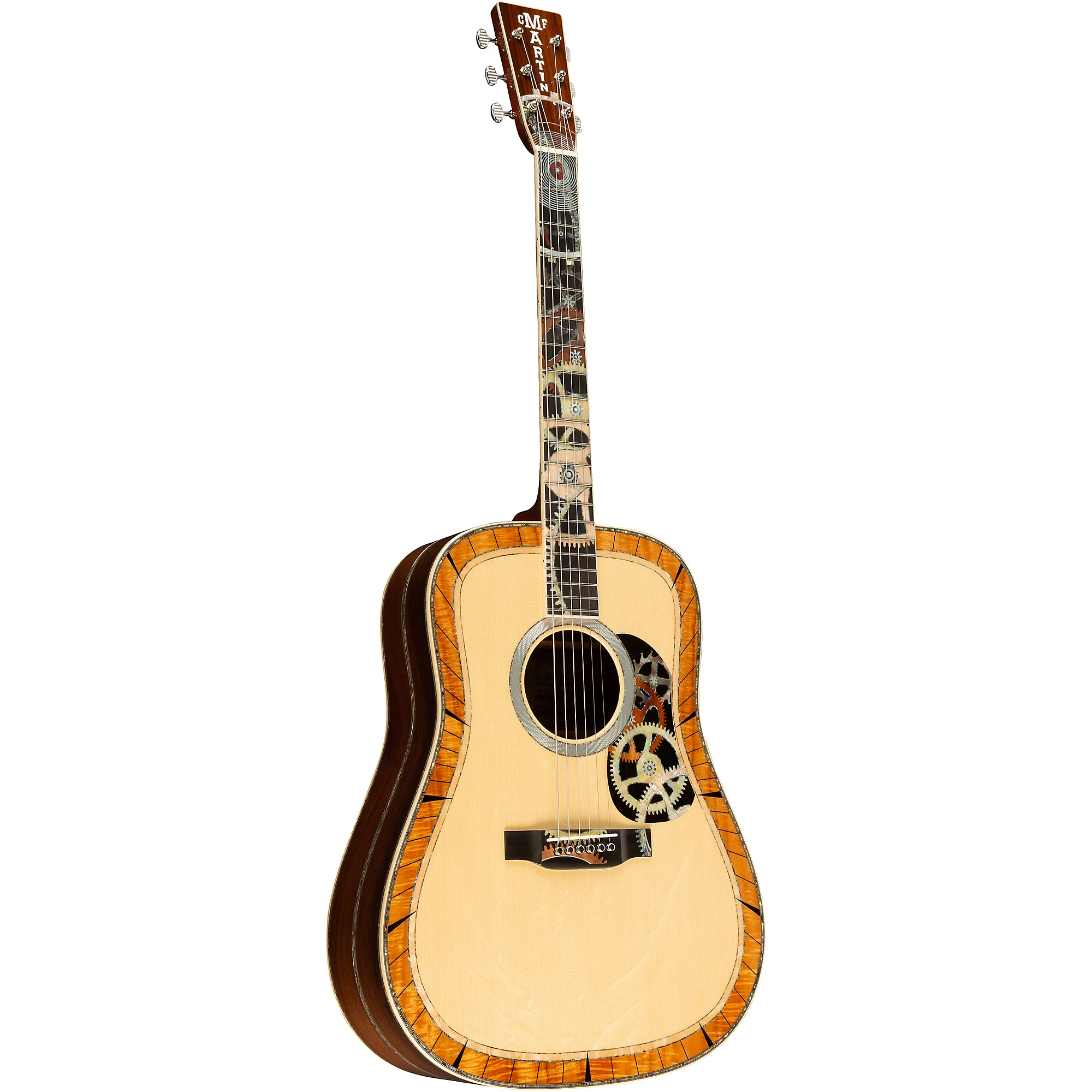 Корпус Тип корпуса: Дредноут Форма выреза: Без выреза Верхняя дека: Ель Энгельмана Задняя дека и днище: Древесина бразильского розового дерева (Pre-CITES) Схема расклейки: Сдвинутая вперед X-образная схема Отделка корпуса: Глянец Ориентация: Правосторонняя Гриф Форма грифа: Модифицированная V Ширина у нижнего порожка: 1,75" (44,45 мм) мм) Гриф: Эбеновое дерево Древесина шейки: Махагон Длина мензуры: 25,4" Количество ладов: 20 Отделка грифа: Глянцевая Электроника Звукосниматель/предусилитель: Нет Бренд: Не применимо Конфигурация: Не применимо Эквалайзер предусилителя: Не применимо Фильтр обратной связи: Не применимо Тюнер: Не применимо Прочее Накладка головки грифа: Не указано Колки: Никелированные с открытым механизмом Мост: Эбеновое дерево Седла и порожки: Компенсированные/Кость Количество струн: 6-струнная Специальные особенности: Инкрустация Чехол: Жесткий футляр Аксессуары: Гарантийный талон, инструменты для настройки, лимитированные часы Страна происхождения: США