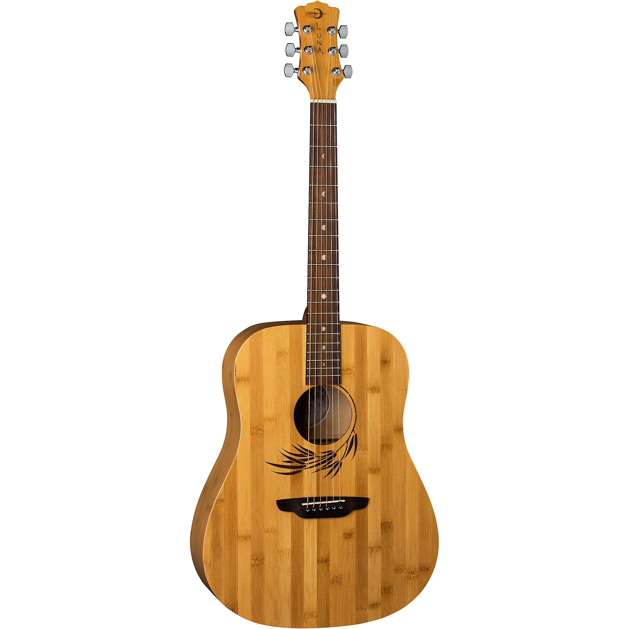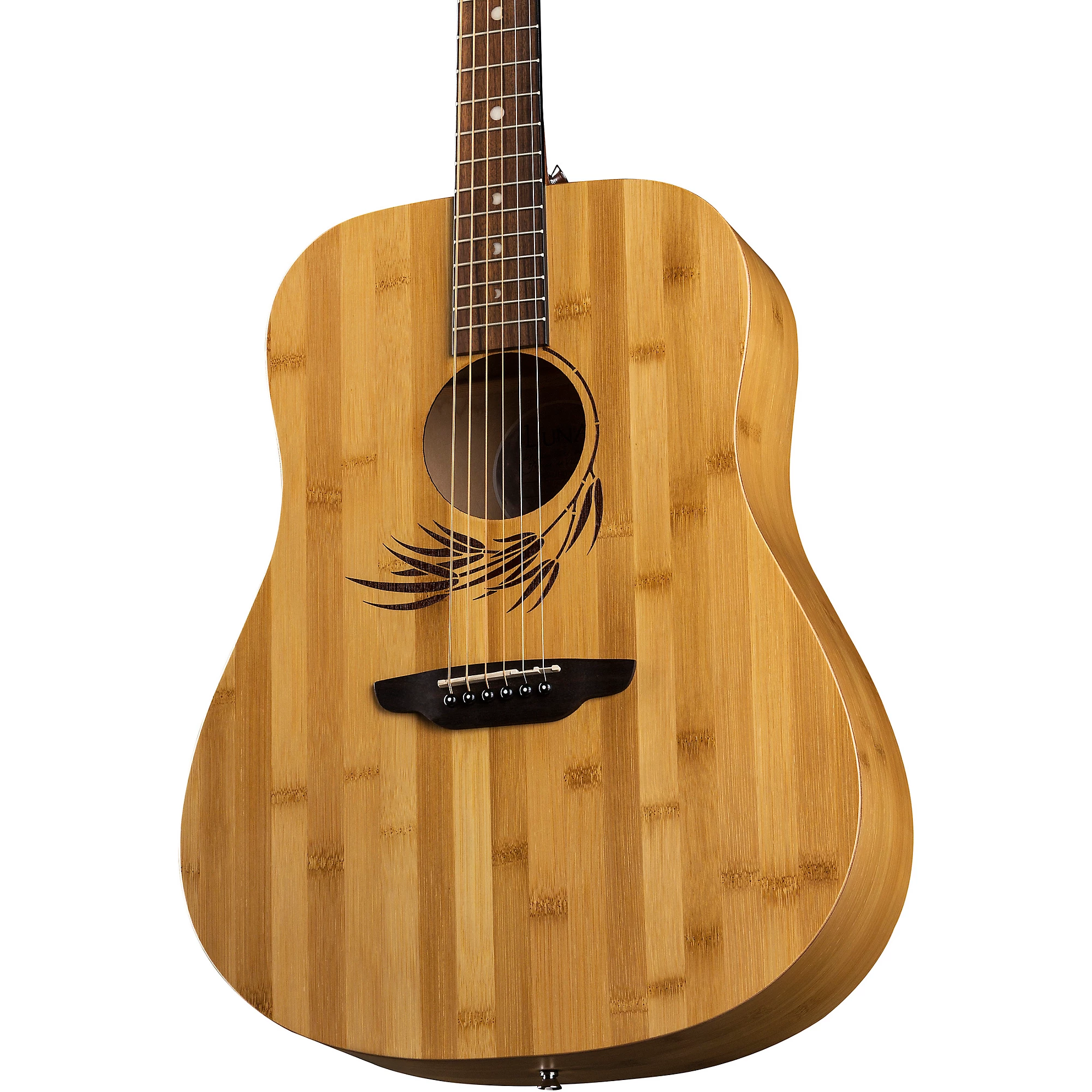 Доступный дредноут с оригинальным и стильным дизайном. Luna продолжает создавать уникальные инструменты с использованием экзотических пород древесины, расширяя свою серию Bamboo и добавляя эту акустическую гитару Woodland Bamboo Dreadnought полноразмерного размера. Гитара Woodland Series Bamboo Dreadnought изготовлена с мензурой 25'', грифом из махагони, мостом и накладкой грифа из пау ферро, а также красивыми перламутровыми инкрустациями в виде фаз луны. От лазерной гравировки листьев вокруг звукового отверстия до плавных волн на естественном бамбуковом корпусе - люди будут очарованы природной красотой этой гитары. Независимо от того, выступаете ли вы на сцене или создаете музыку в студии, Woodland Bamboo полноразмерная гитара подарит теплый звук с каждым аккордом. Чехол продается отдельно.
