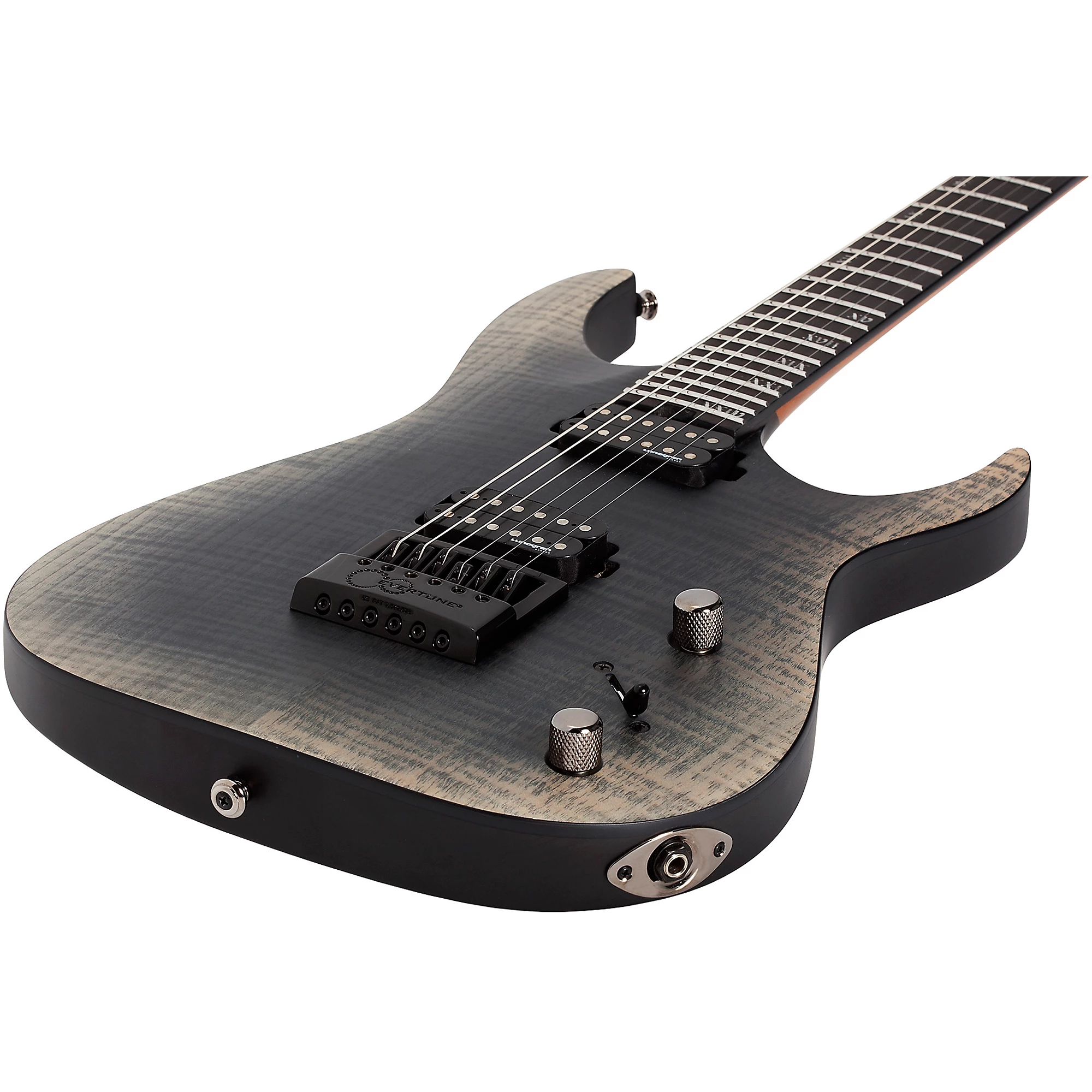 Чистый и мощный с максимальной играбельностью Электрогитарная серия Schecter Banshee Mach EverTune поднимает совершенство на совершенно новый уровень. Переделанный корпус формы Banshee, вырезанный из легкого древесного льяного ясеня, красиво сочетается с верхней дека из кленового фламированного дерева. Сквозной пятислойный гриф из обожженного клена и пурпурного дерева невероятно быстрый и удобный, с ультратонкой U-образной формой грифа с комбинированным радиусом, люминесцентными боковыми маркерами, двумя углеродными стержнями для усиления, накладкой из эбона и 24 X Jumbo ладами из нержавеющей стали. На новый уровень звучания поднимаются пассивные хамбакеры Lundgren M6. Звукосниматели Lundgren изготавливаются вручную в Швеции и считаются одними из лучших по качеству и звучанию в мире. Звукосниматели M6 известны своим высоким выходом и чистотой звучания, благодаря уникальной намотке и размещению керамического магнита под звукоснимателем.