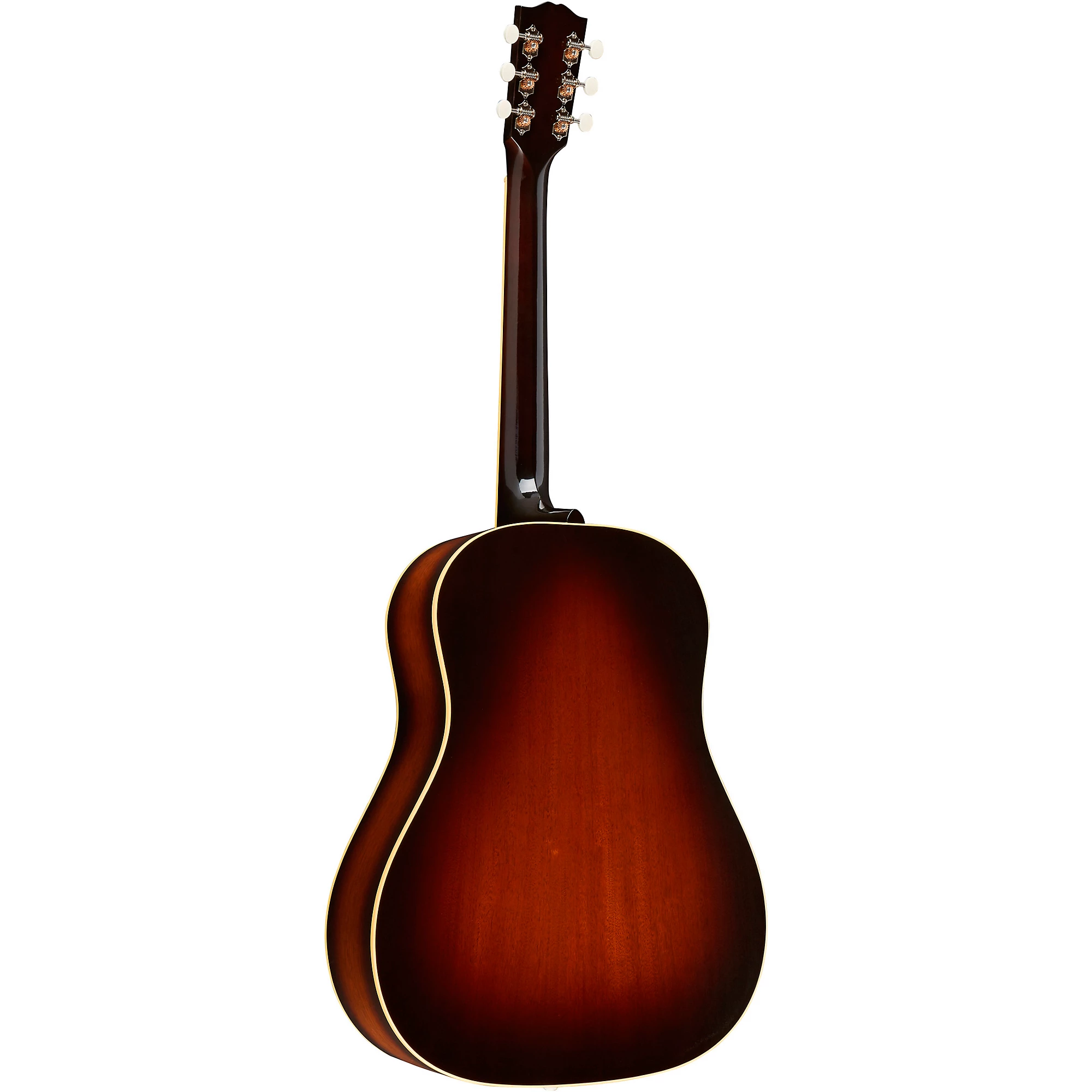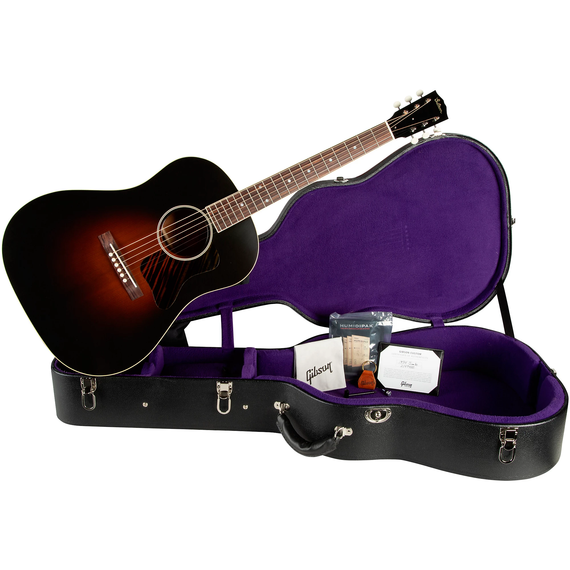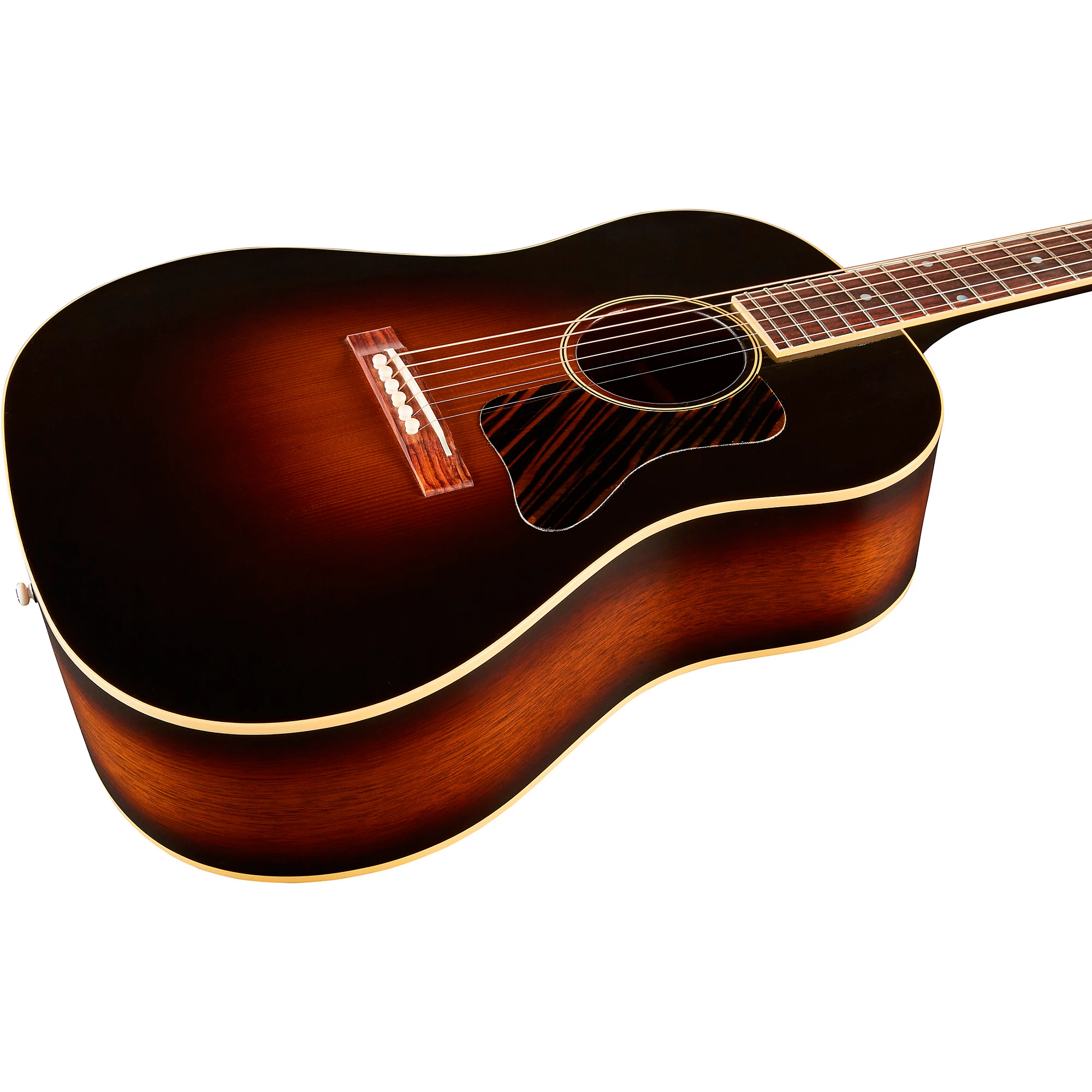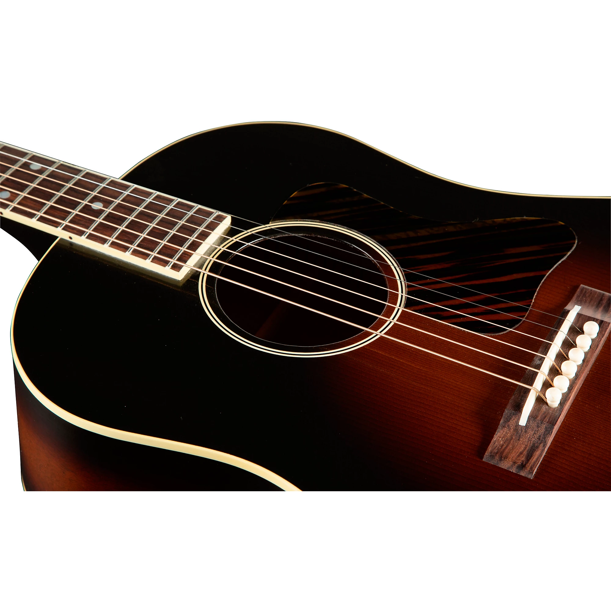 Gibson 1934 Jumbo - это гитара, с которой началась история акустических Jumbo от Gibson. Когда Gibson выпустила модель Jumbo в 1934 году, она была больше любой другой гитары, предлагаемой Gibson, и стала выдающимся инструментом. Производившаяся всего два года, эта редкая гитара быстро стала любимой у артистов и лучшим образом отражает звучание Gibson, известное мировым артистам и коллекционерам. Тщательно воссозданная с верхней декой из термически выдержанной ели Adirondack, горячей клеевой обвязкой верха, корпусом из махагони, традиционной длиной мензуры 25'' и историческим профилем грифа V, Gibson Acoustic Custom Shop возвращает легенду - 1934 Jumbo.