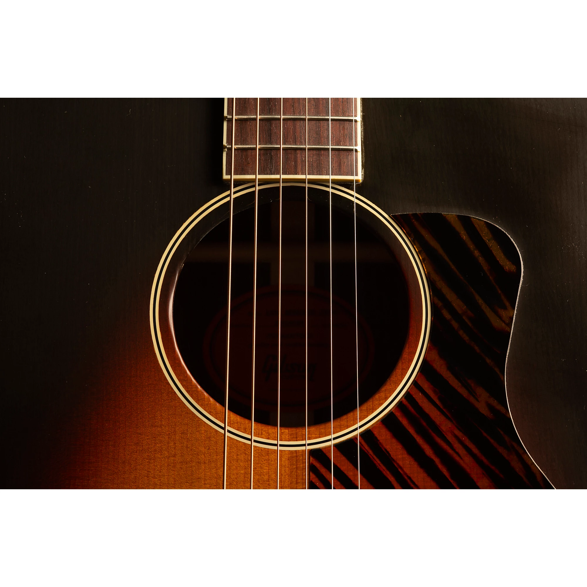 Акустическая гитара Gibson Jumbo с термически выдержанной верхней декой из красной ели и корпусом из палисандра.
