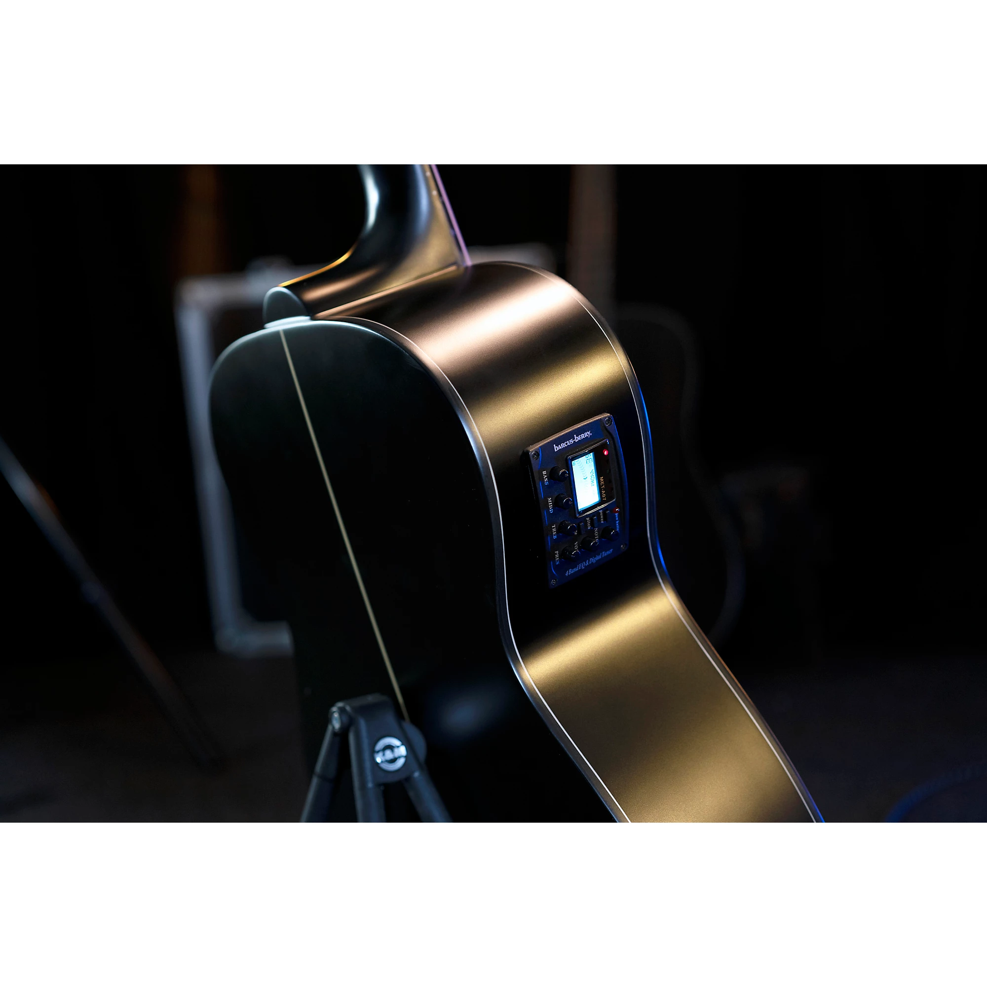 Спинка и обечайки из окоуме, верхняя дека из смеси палисандраГриф из красного дереваАктивная электроника Barcus-Berry с интегрированным тюнером