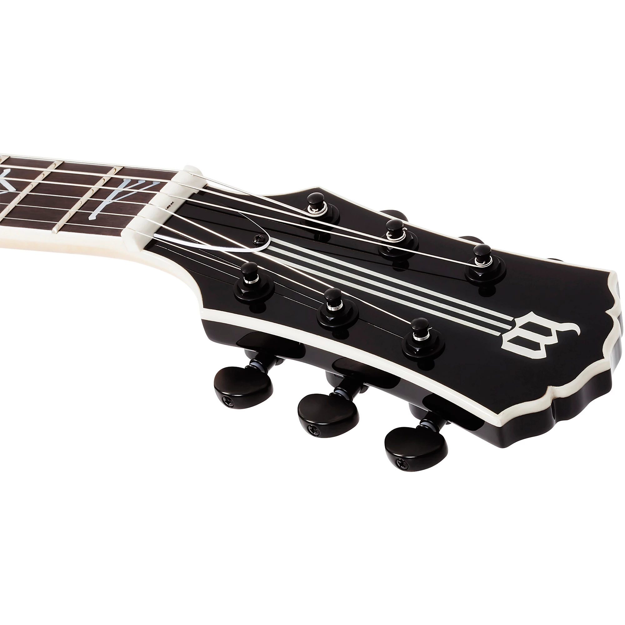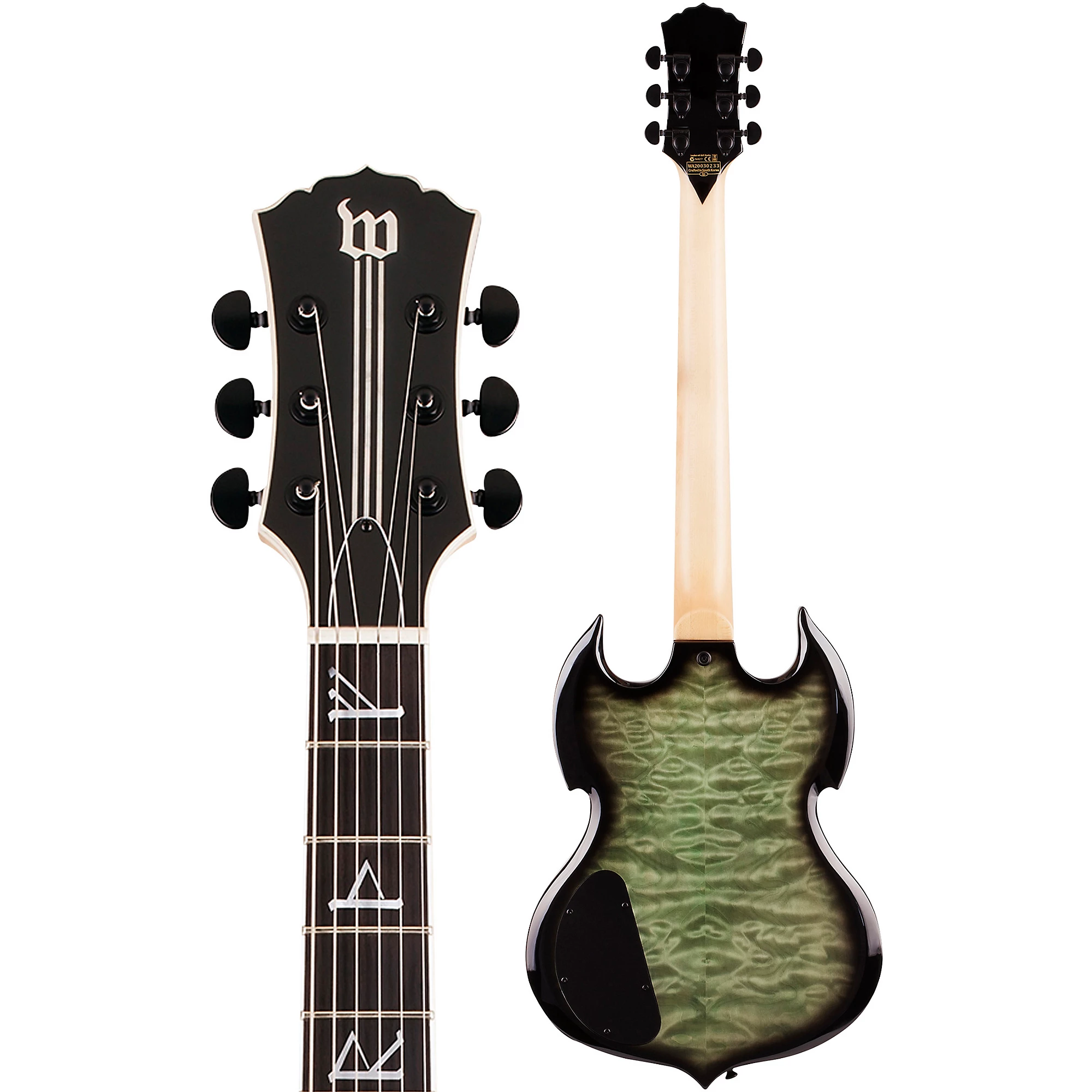 Электрогитара Zakk Wylde с мощным звуком, созданная для быстрых соло и впечатляющих риффов. Barbarian Electric от Wylde Audio сочетает в себе монструозный дизайн и отличные компоненты, необходимые для инструмента с насыщенным звучанием. Оснащенная фирменным комплектом звукоснимателей EMG 81/85 от Zakk Wylde, Barbarian обеспечивает мощный звук и пронзительные соло. Более того, благодаря доступу ко всем 22 экстра-джамбо ладам на сверхбыстрой 3-слойной кленовой шее с профилем Zack C, вы сможете удобно исполнять соло и риффы. Эта стильная 6-струнная электрогитара оснащена накладкой на гриф из эбенового дерева с инкрустацией рун из перламутра, верхом из клепчатого клена, колками Grover Rotomatic и струнодержателем TonePros T3BP Tune-O-Matic для стабильной настройки.