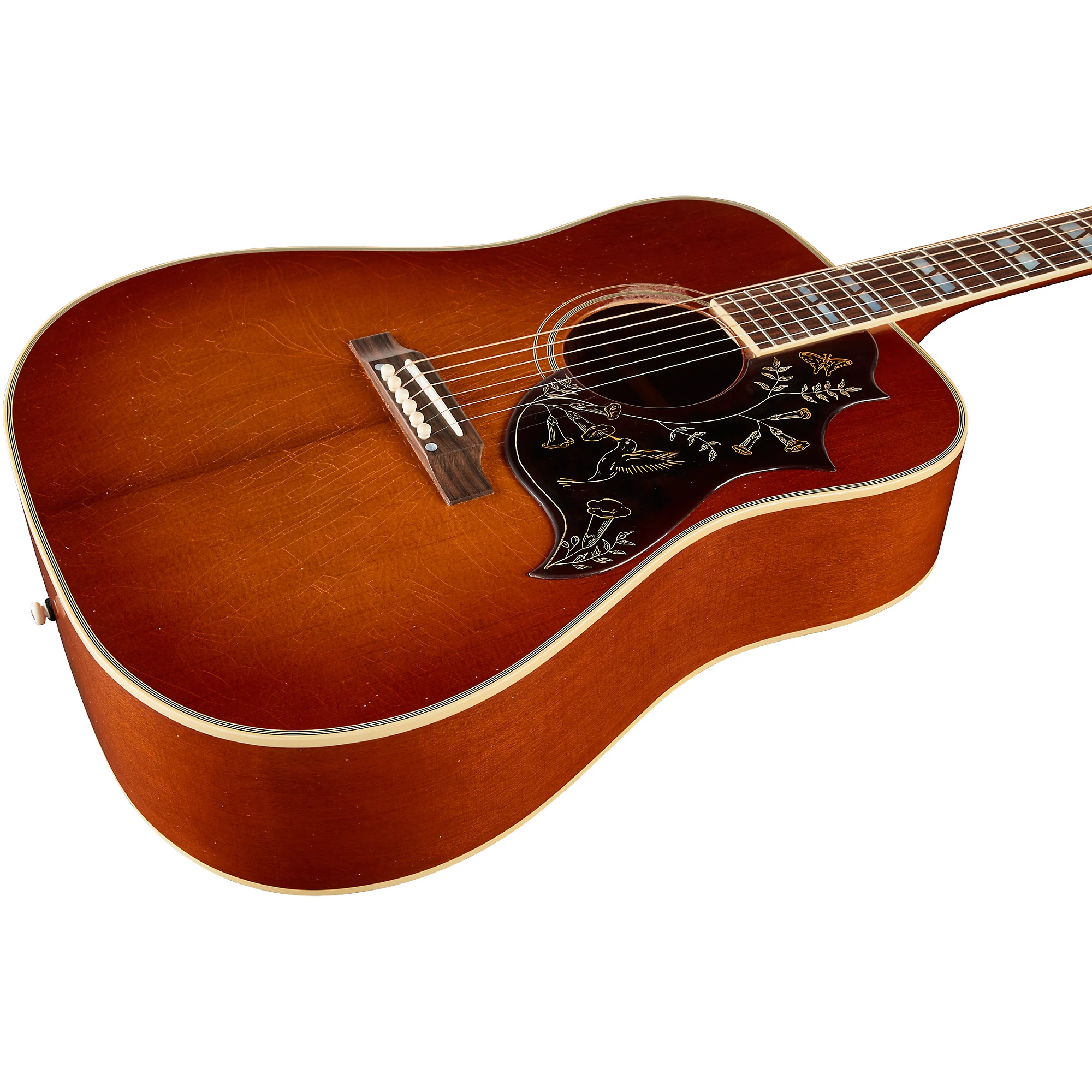 Модель 1960 Hummingbird от Gibson отражает внешний вид и характеристики культовых оригиналов. С квадратным вырезом верхней деки из термически состаренной ели ситка, модель 1960 Hummingbird была слегка состарена умелыми мастерами лаборатории Murphy Lab, чтобы придать винтажный внешний вид и ощущение. Это сочетается с едва подержанной фурнитурой, имитирующей десятилетия легкой игры, что придает ей характер, атмосферу и ощущения оригинала золотой эпохи Gibson.