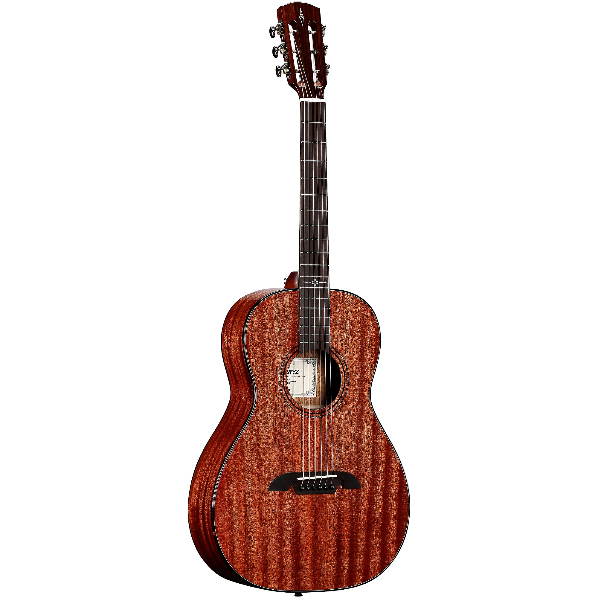 Акустическая гитара размера «parlor» с цельной конструкцией из красного дерева.
