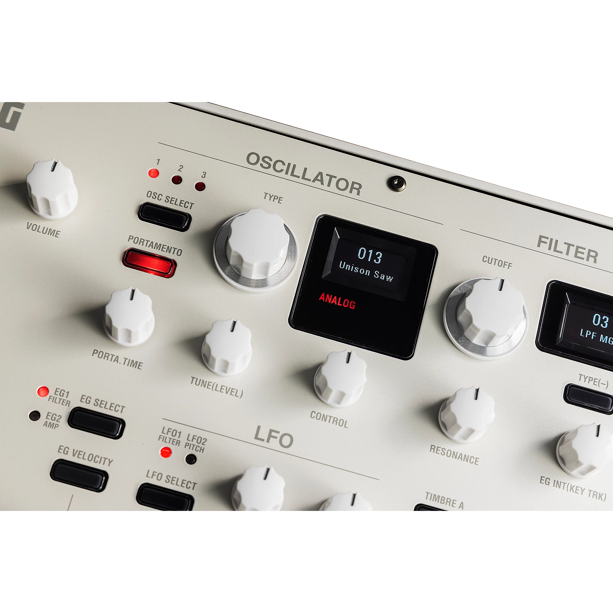 Осциллятор- Структура: 3 осциллятора (выбор из типов analog, noise, DWGS, PCM и MIC IN)