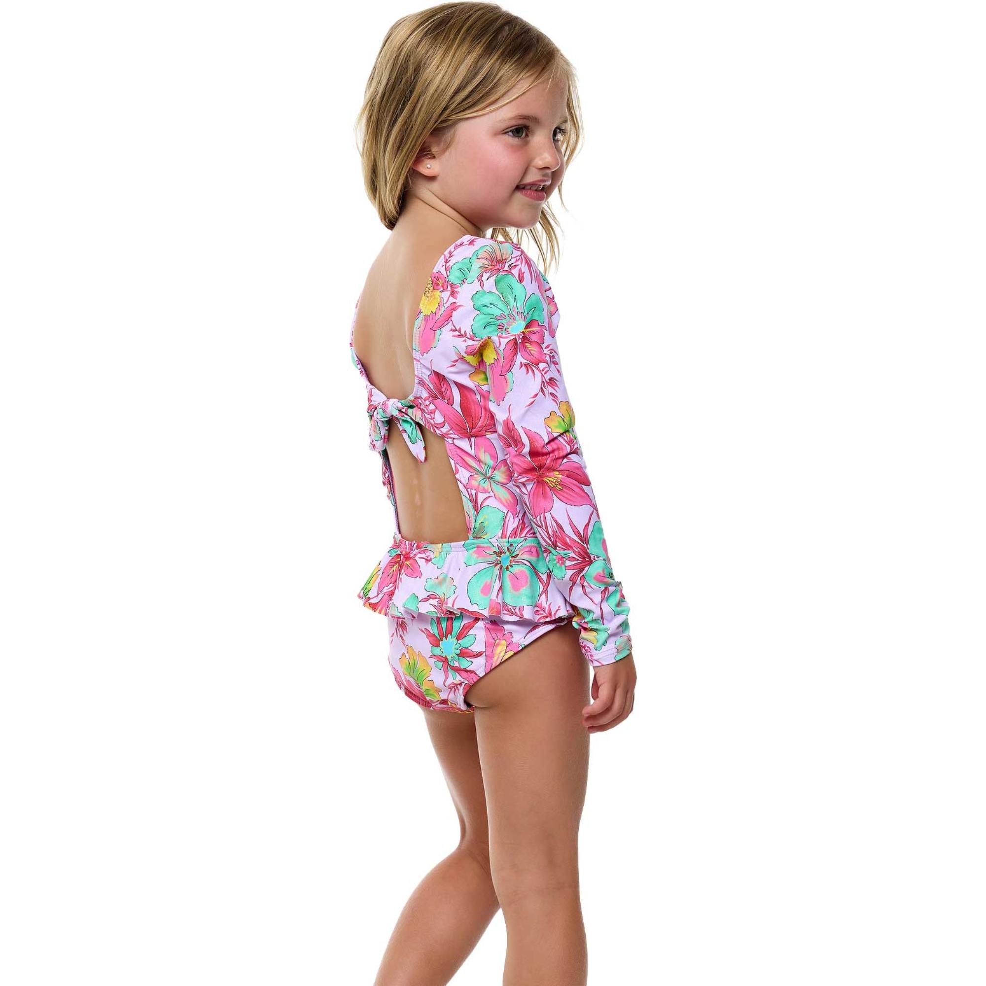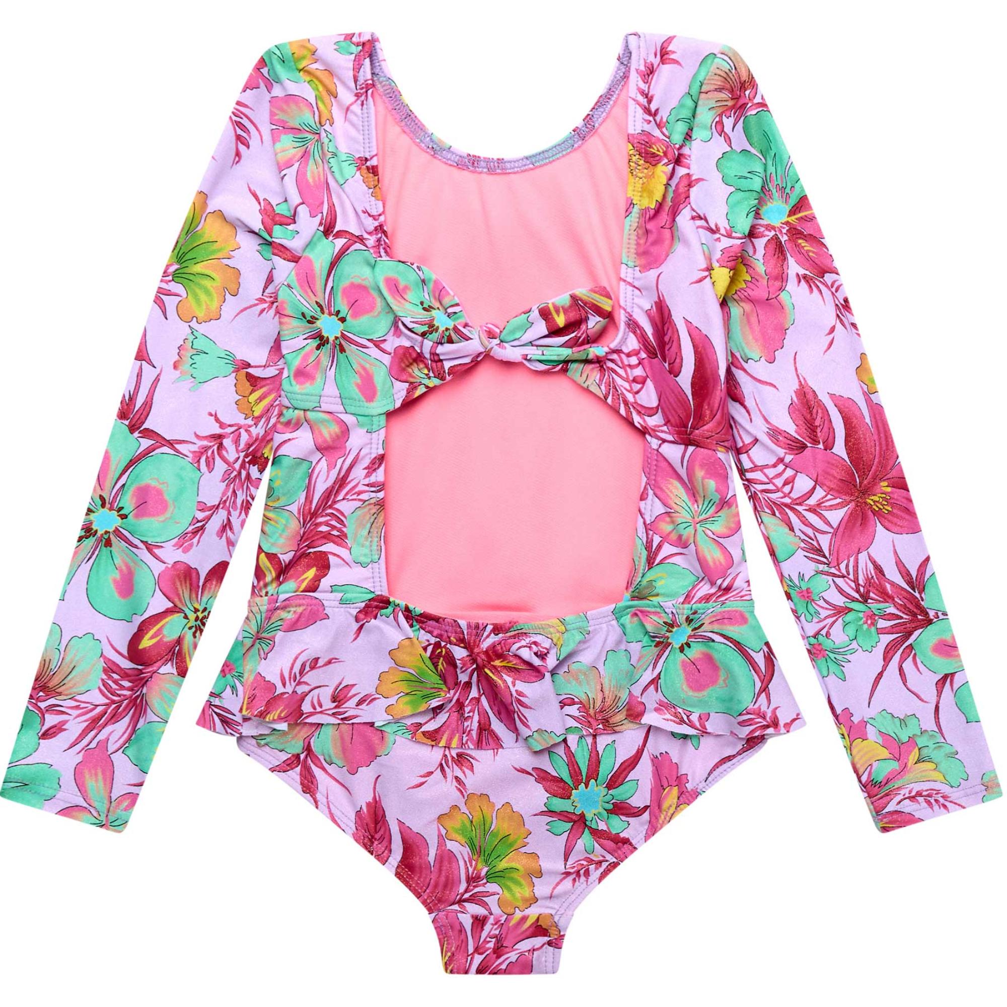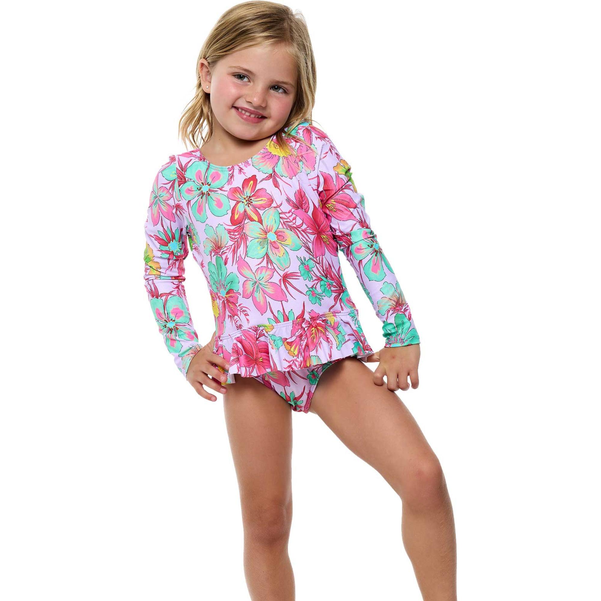 Детский купальник-рашгард Beach Lingo Little Girls' Glisten Garden с длинными рукавами приглашает маленьких искательниц приключений наслаждаться солнцем стильно и в полной защите. Этот яркий купальник, украшенный разноцветным тропическим цветочным принтом, является частью красочной коллекции Glisten Garden. Созданный для веселых дней на пляже или у бассейна, этот купальник-рашгард имеет круглый вырез и регулируемую завязку сзади, обеспечивая идеальную посадку для активных малышек. Скромное покрытие ягодиц и игривая мини-юбочка с оборками добавляют очарования, а открытый вырез на спине делает его свежим и воздушным. Благодаря ткани с защитой UPF 50+ этот купальник-рашгард защищает нежную кожу от вредных ультрафиолетовых лучей, что делает его разумным выбором для родителей, которые ставят безопасность на солнце на первое место. Созданный для маленьких девочек, которые любят плескаться, плавать и исследовать мир, этот купальник идеально сочетает в себе комфорт и очарование. Строят ли они замки из песка или играют в водные игры, этот купальник-рашгард станет идеальным спутником летних развлечений.