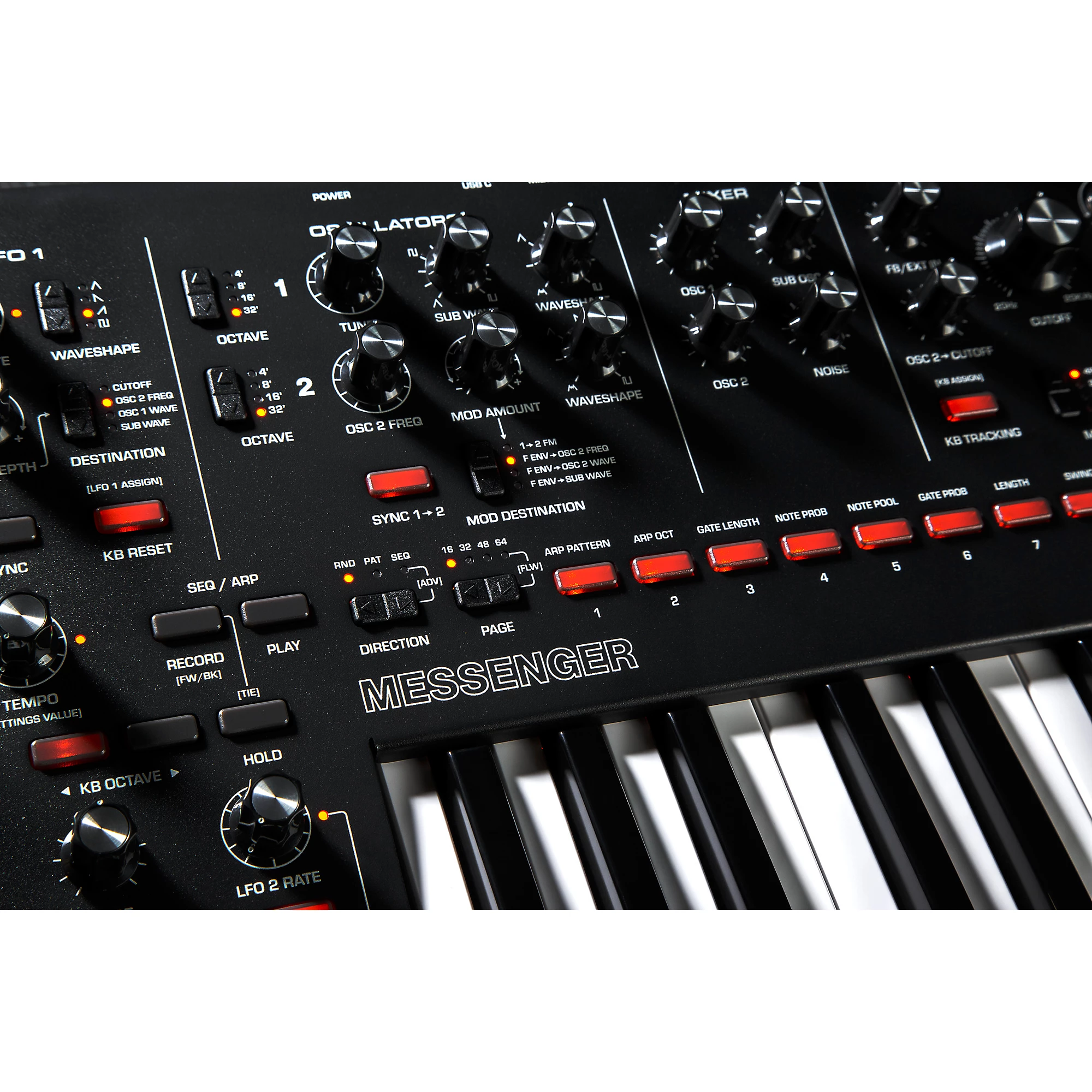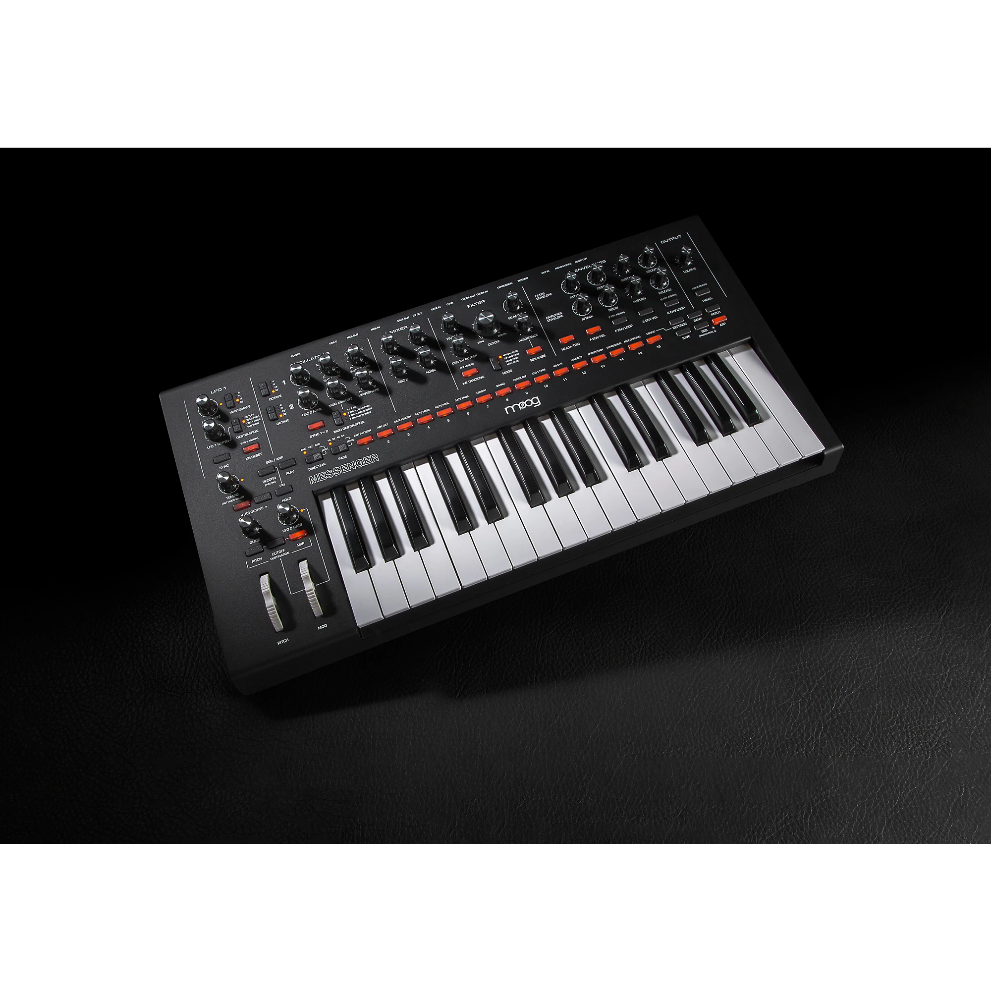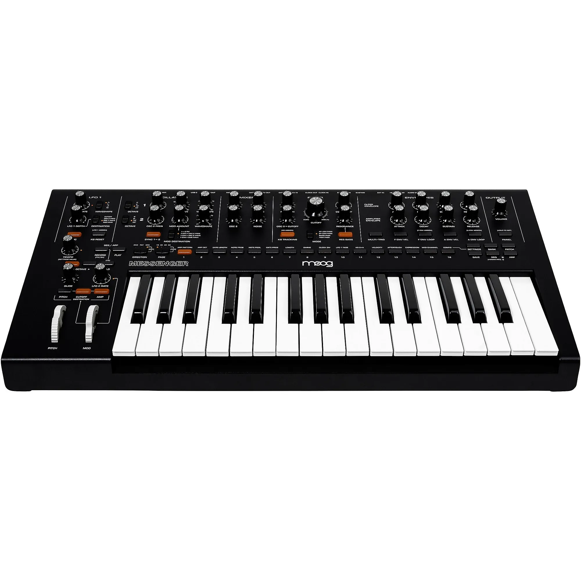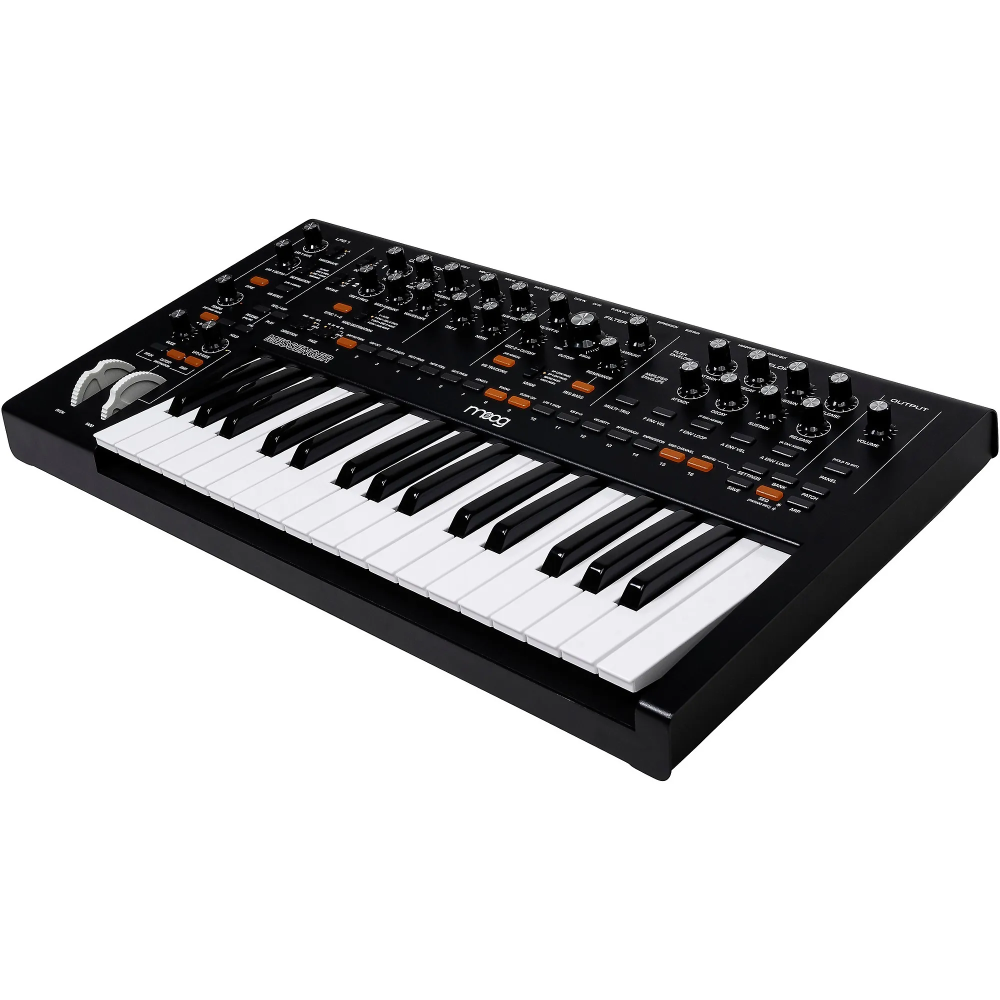 Moog Messenger - это моносинтезатор, который действительно обеспечивает те насыщенные, динамичные тембры Moog, о которых мы все мечтаем. Это не просто еще один аналоговый синтезатор; он переосмысливает классический опыт работы с синтезатором, добавляя современные элементы в его схемы. Представьте себе, что это развитие гигантов - легендарного Minimoog Model D и Voyager - но созданное для сегодняшних музыкантов. Вы получаете вечный аналоговый звук, дополненный функционалом, который действительно работает. 32 полноразмерные клавиши ощущаются просто отлично (полувзвешенные с поддержкой скорости нажатия и послекасания), обеспечивая по-настоящему выразительное управление клавиатурой прямо из коробки. Под капотом - двойные осцилляторы, мощный суб-осциллятор и волнообразование, что означает огромный диапазон звуков для творчества.